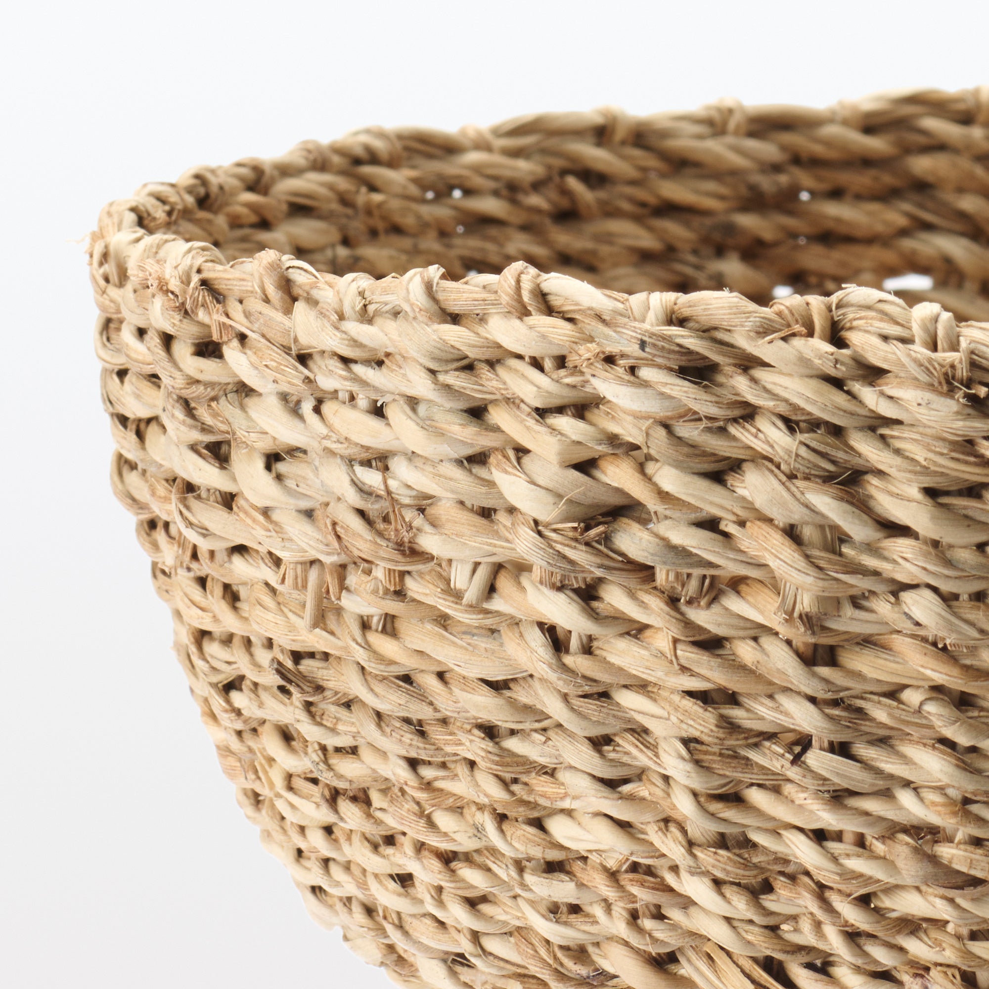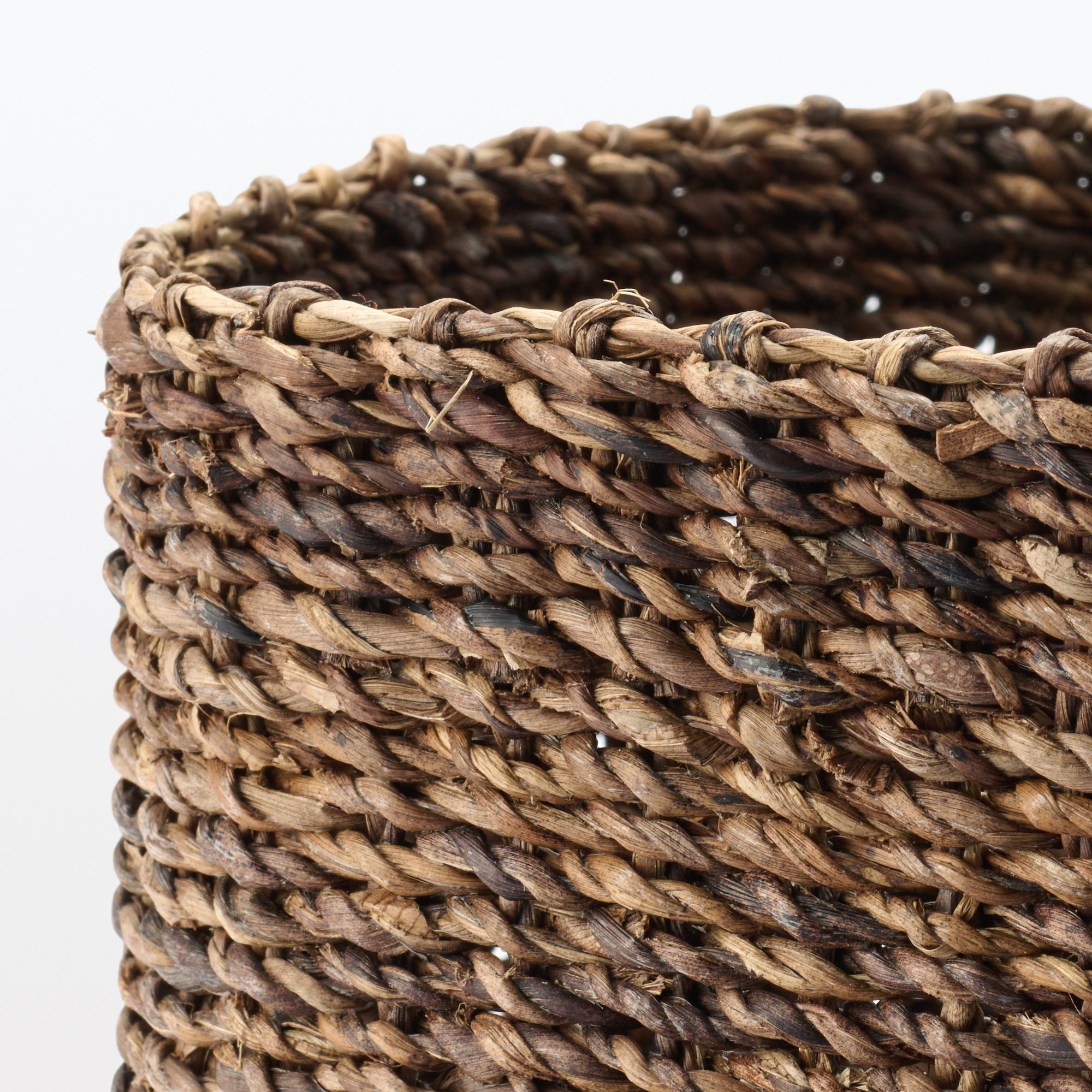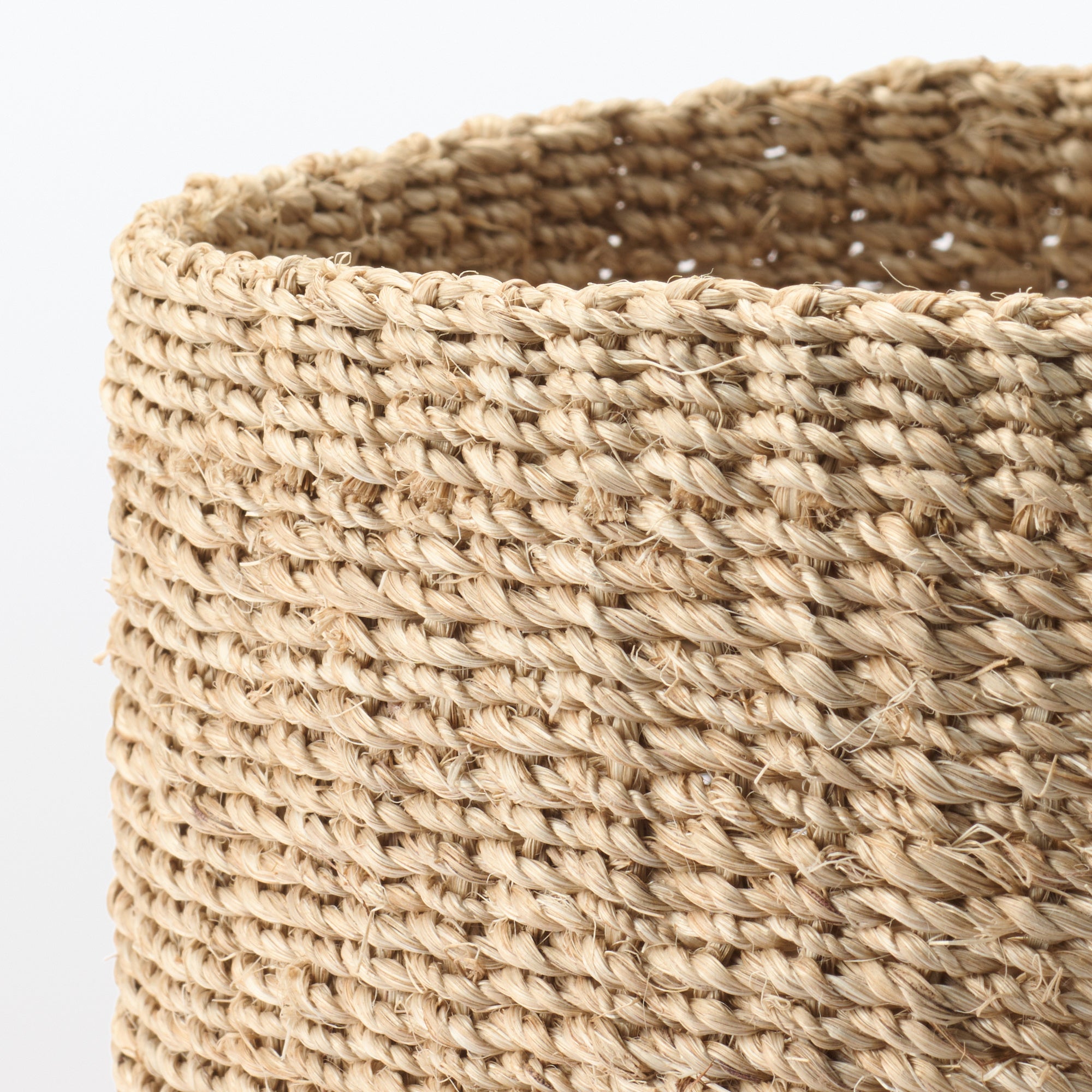 マニラ麻の表皮部分のバクバクは繊維が硬くて太く、色が濃いのが特徴です。型崩れしにくいため比較的重いものを収納するバスケットや鉢カバーなどに向いている素材です。