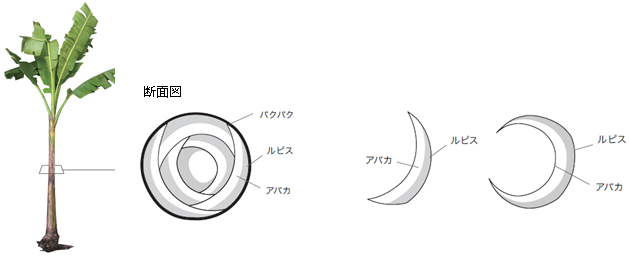 茎の各部分がそれぞれ違った繊維の特性を持ち、部位によって色や太さ、名称や使い道も変わります。色は内側から外側に向かい白から黒(褐色)へとだんだん濃くなり、繊維の太さは内側が細く、外側に向かい太くなっていきます。