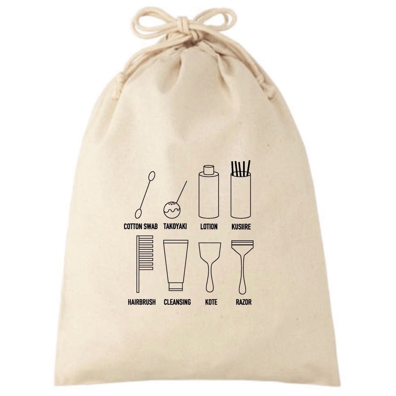 サステナブルをテーマに、ホテルのアメニティ入れとしてお使いいただけるエコ巾着を制作。ホテルのアメニティと大阪名物を組み合わせたイラストは、ユーモアがありながらも、普段使いしやすいデザインです。