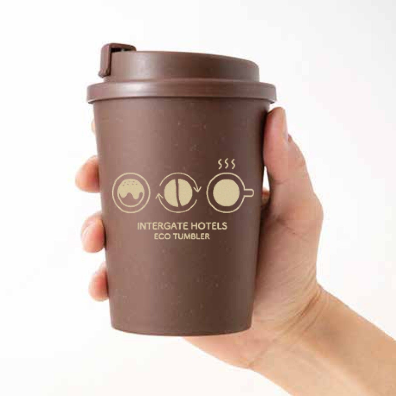 使い捨てプラスチック削減に向けたマイボトルの利用啓発のため、オリジナルタンブラーを制作。大阪の「たこ焼き」、サステナブルの「コーヒーかすのリサイクル」、ホテルの「こだわりのコーヒー」の3つの要素をイメージしたデザインを施しました。