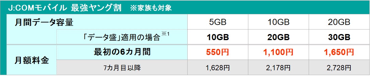 (5) 特設サイト: https://www.jcom.co.jp/campaign/mobile_young/
