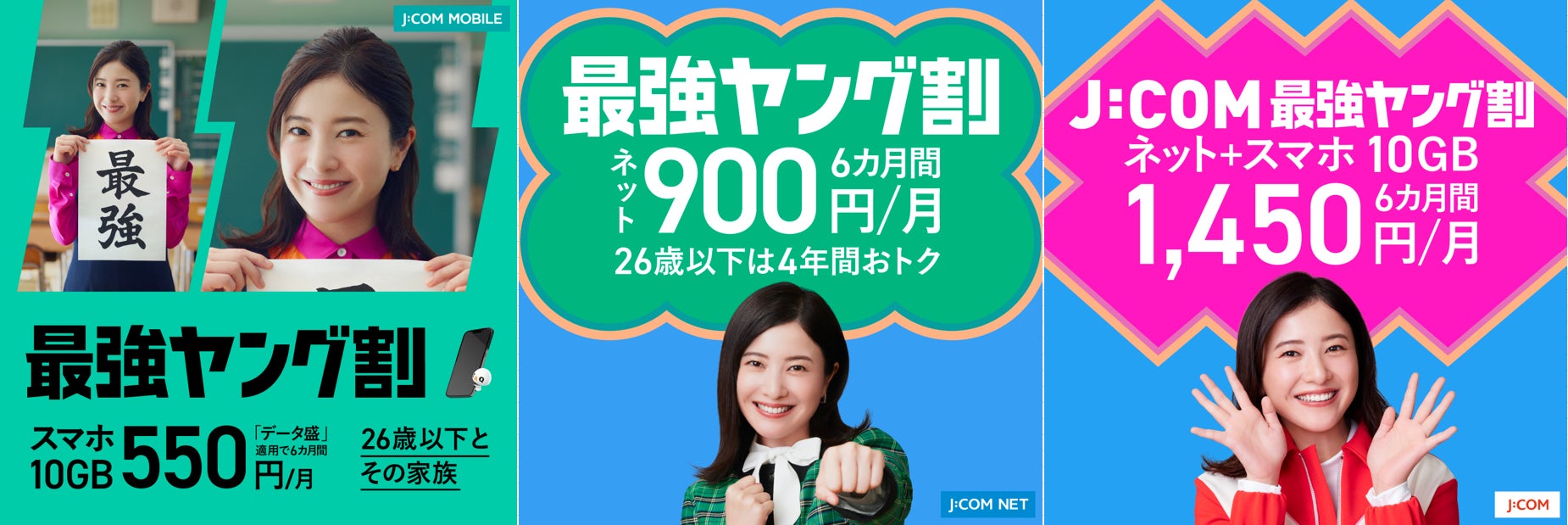 ー12月1日(金)提供開始ー 26歳以下なら「J:COM 最強ヤング割」6カ月間、スマホ10GB月額550円※1、ネット月額900円