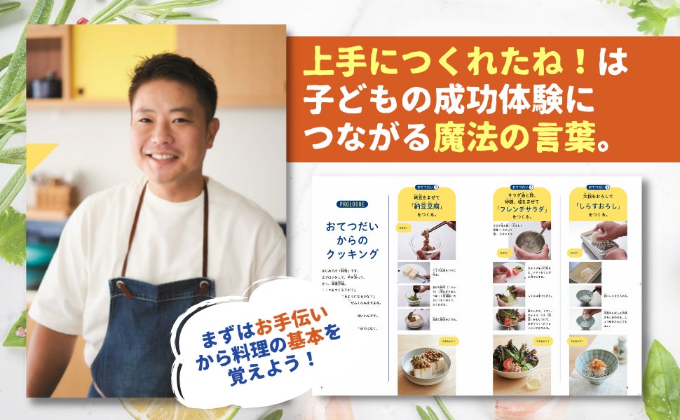 | 小学二年生のころから、毎週日曜日の、家族の朝食は僕がつくっていました。当時は「家族のためにがんばるぞ!」ということはなく、たんに早朝のテレビ番組を見るために早起きしていて、当然、お腹が空き……、「自分で朝ごはんをつくろう!」とスタートしたのがきっかけでした。 次第に、家族からほめられ、期待されるうちにどんどん料理への興味がわいてきて、ついには料理家の道に進みました。子ども時代に、父や母から料理をつくることで学んだ経験は、料理家としてはもちろんのこと、日々の仕事、毎日の暮くらしにも大きく影響しています。僕が得意とする「段取り力」と「創造力」は、こうした“料理をつくる経験”を通じて身についたと考えています。 自分の体験と、現在の子育て(男児の父です)、そしてオンラインクッキングスクールの運営を基に子どもたちのために考えた「クッキングレシピ」が本書です。さあ、いっしょにお料理をはじめましょう。 料理家・栗原心平(本書「はじめに」より) |