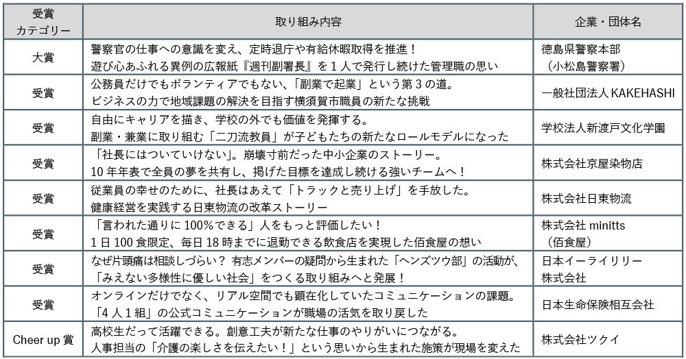 ~警察官の働き方改革、教員が副業して目指す未来の学校の形~コロナ禍で注目される働き方、職場の在り方のヒントになる、日本全国から集まった9つの取り組みが受賞