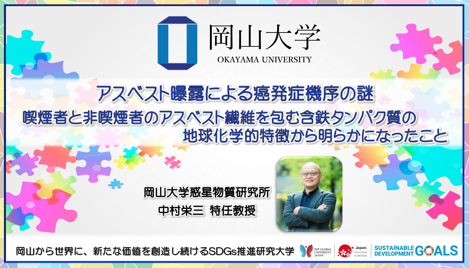 【岡山大学】アスベスト曝露による癌発症機序の謎 ~喫煙者と非喫煙者のアスベスト繊維を包む含鉄タンパク質の地球化学的特徴から明らかになったこと~