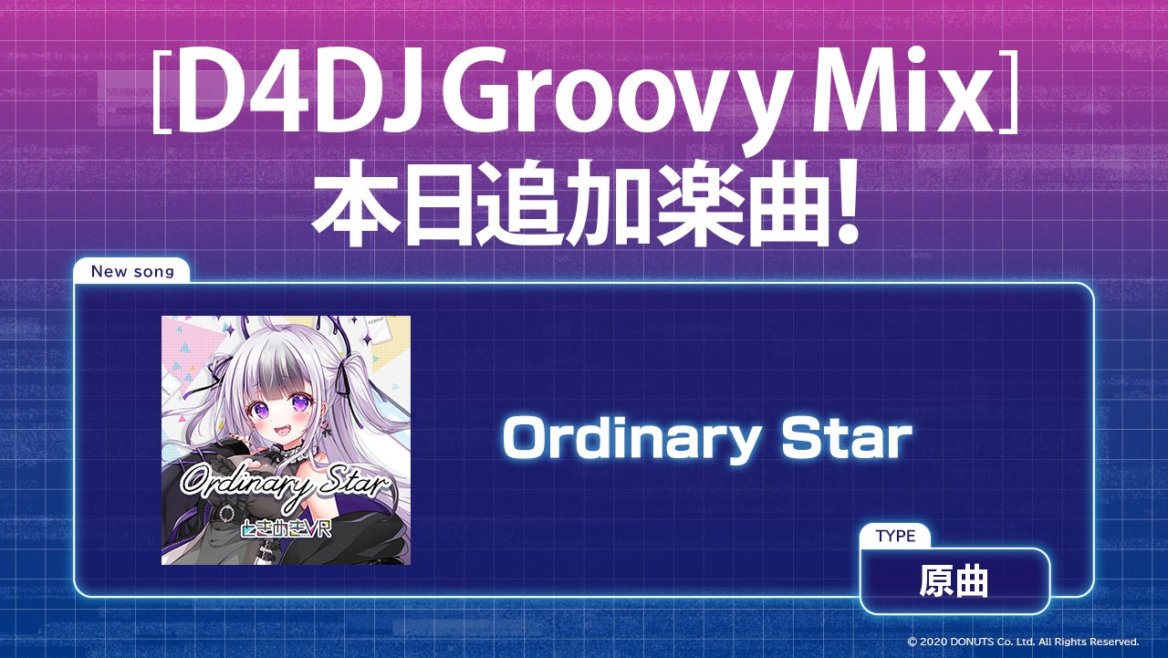 「Ordinary Star(オーディナリースター)」が、DONUTSが運営するスマートフォン向けリズムゲーム「D4DJ Groovy Mix」(以下グルミク)に実装されたことをお知らせいたします。