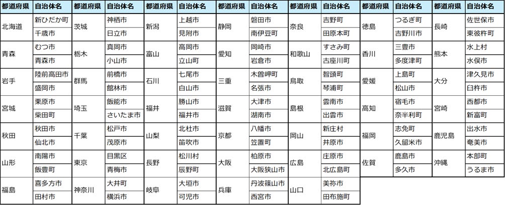 全国47都道府県からそれぞれ2自治体(市区町村)を選出しました。