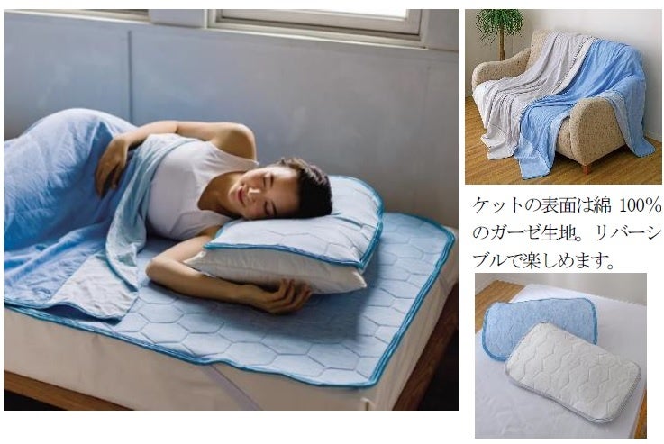 - 接触冷感、放熱、除湿、消臭の機能性寝具で、就寝時も快適に