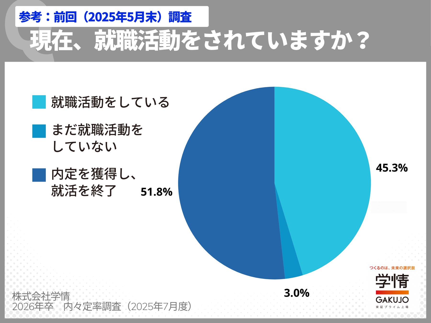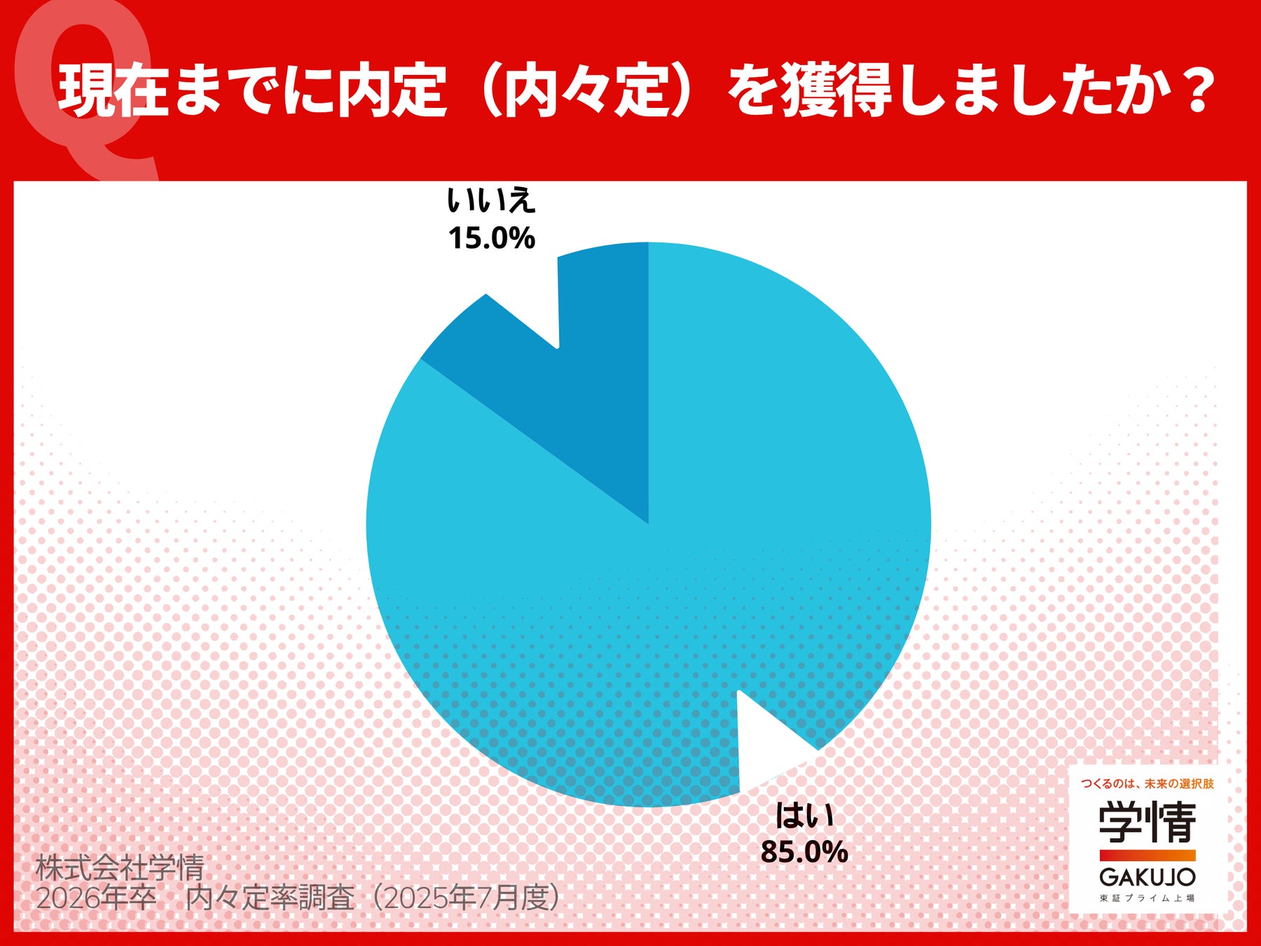 株式会社学情(本社:東京都中央区)は、2026年3月卒業(修了)予定の大学生・大学院生を対象に、最新の「内々定の獲得状況」についてインターネットアンケートを実施しました。