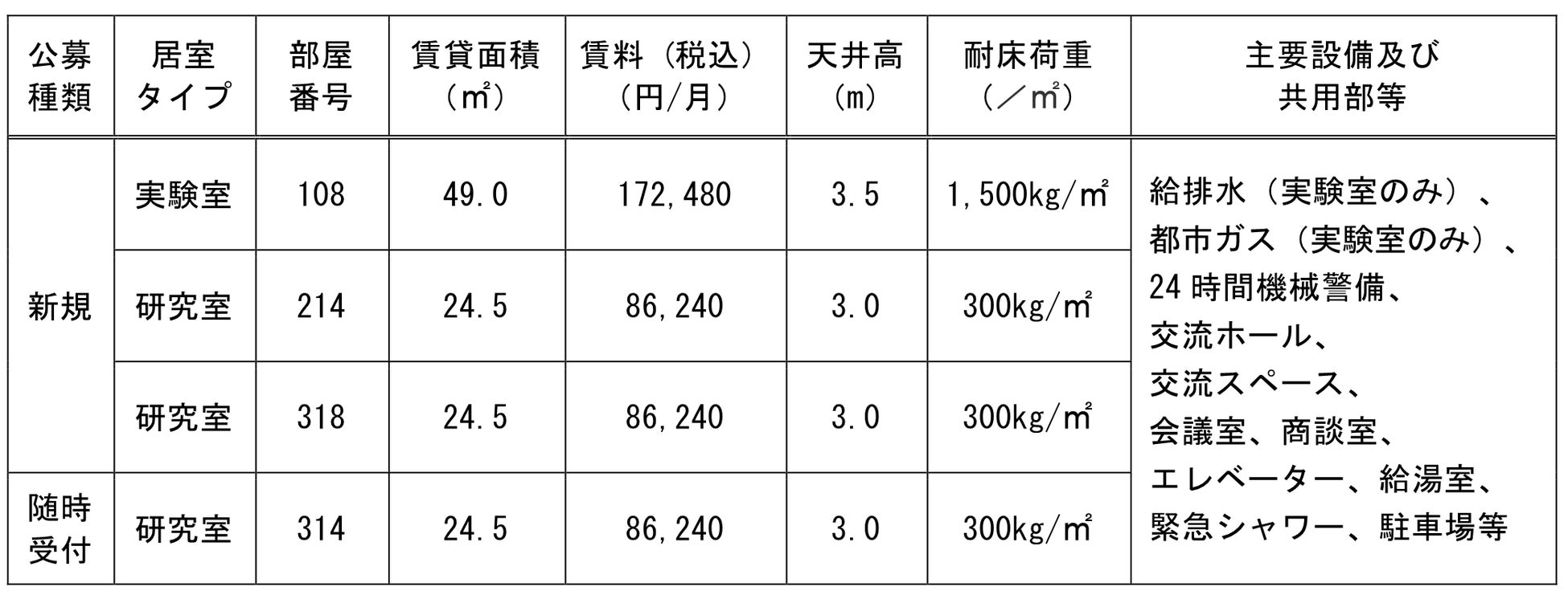 新規公募居室について、214号室、318号室は令和6年4月中旬以降、108号室は令和6年4月下旬以降からご利用可能です。