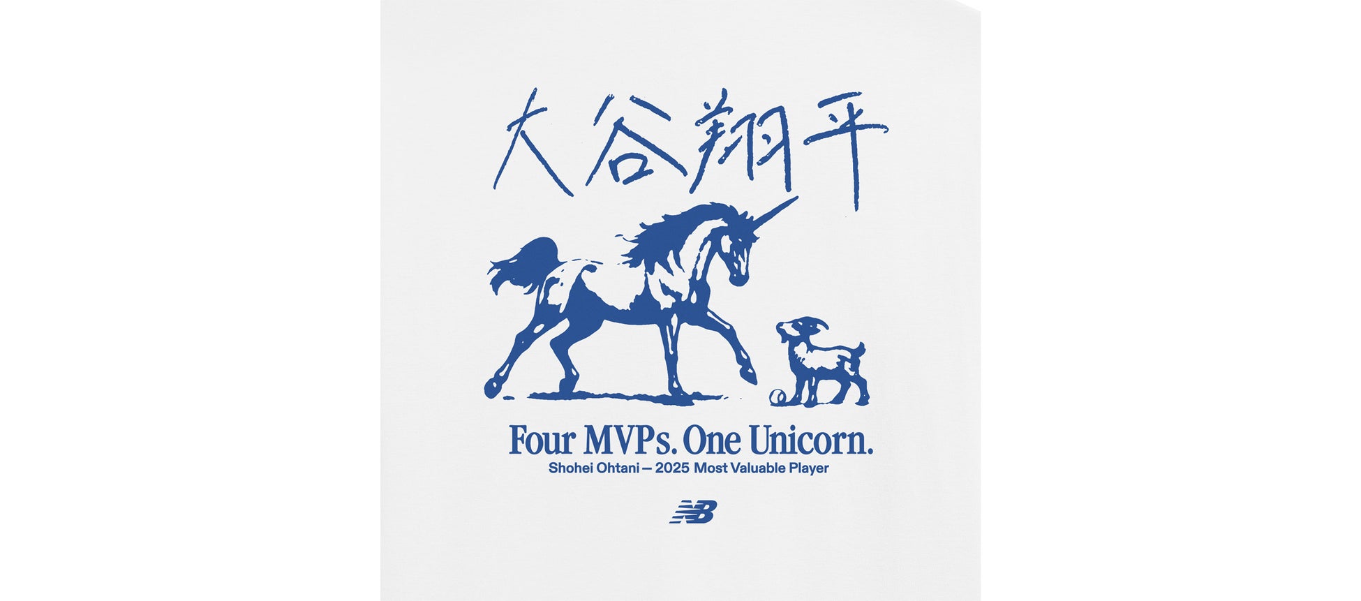 誰も成し遂げたことのない偉業を達成した大谷翔平選手は、史上最高のGOAT(ゴート=ヤギ/The Greatest of all time)をさらに超えた唯一の存在、Unicorn(ユニコーン)です。ニューバランスはこの歴史に残る偉業を、大谷翔平選手の名前とともにデザインした限定グラフィックTシャツで祝福します。