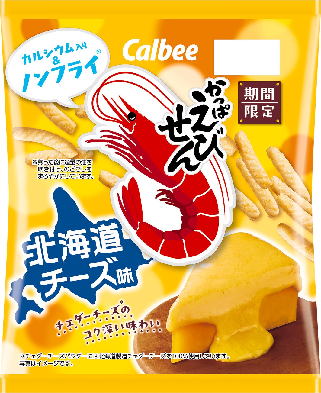 北海道製造のチェダーチーズ※を使用!秋冬限定のコク深い味わいが楽しめる『かっぱえびせん 北海道チーズ味』