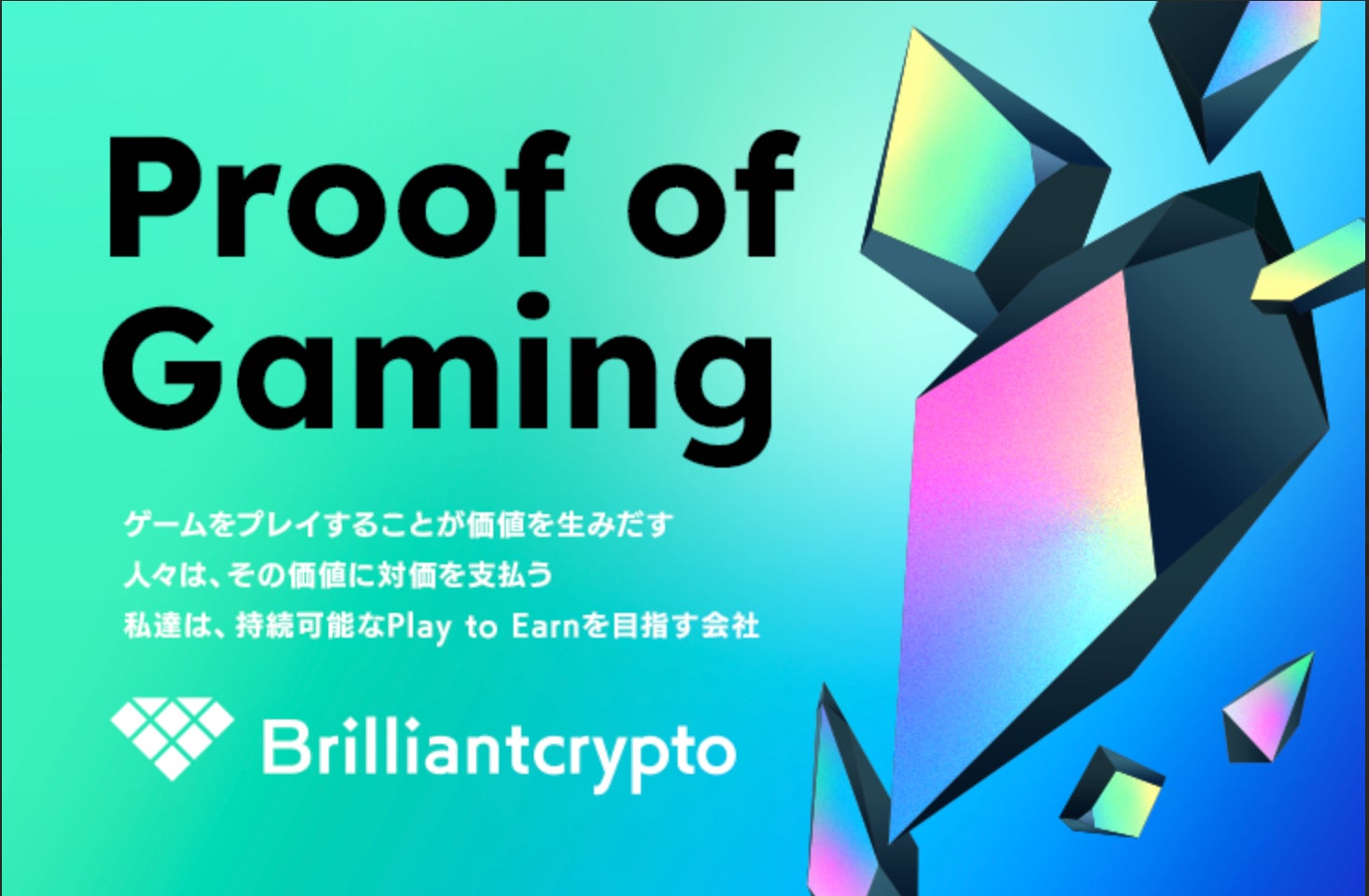 Brilliantcryptoは、「Proof of Gaming」という新しいモデルを導入した持続可能なPlay to Earnを目指すブロックチェーンゲームです。ビットコインのコンセンサスアルゴリズムである「Proof of Work」から着想を得ています。ゲームプレイがデジタル上の宝石の価値を証明することで、他人の価値を創出する「Proof of Gaming」によって、メタバースに価値ある経済圏を生み出す日本発のグローバル大型プロジェクトです。