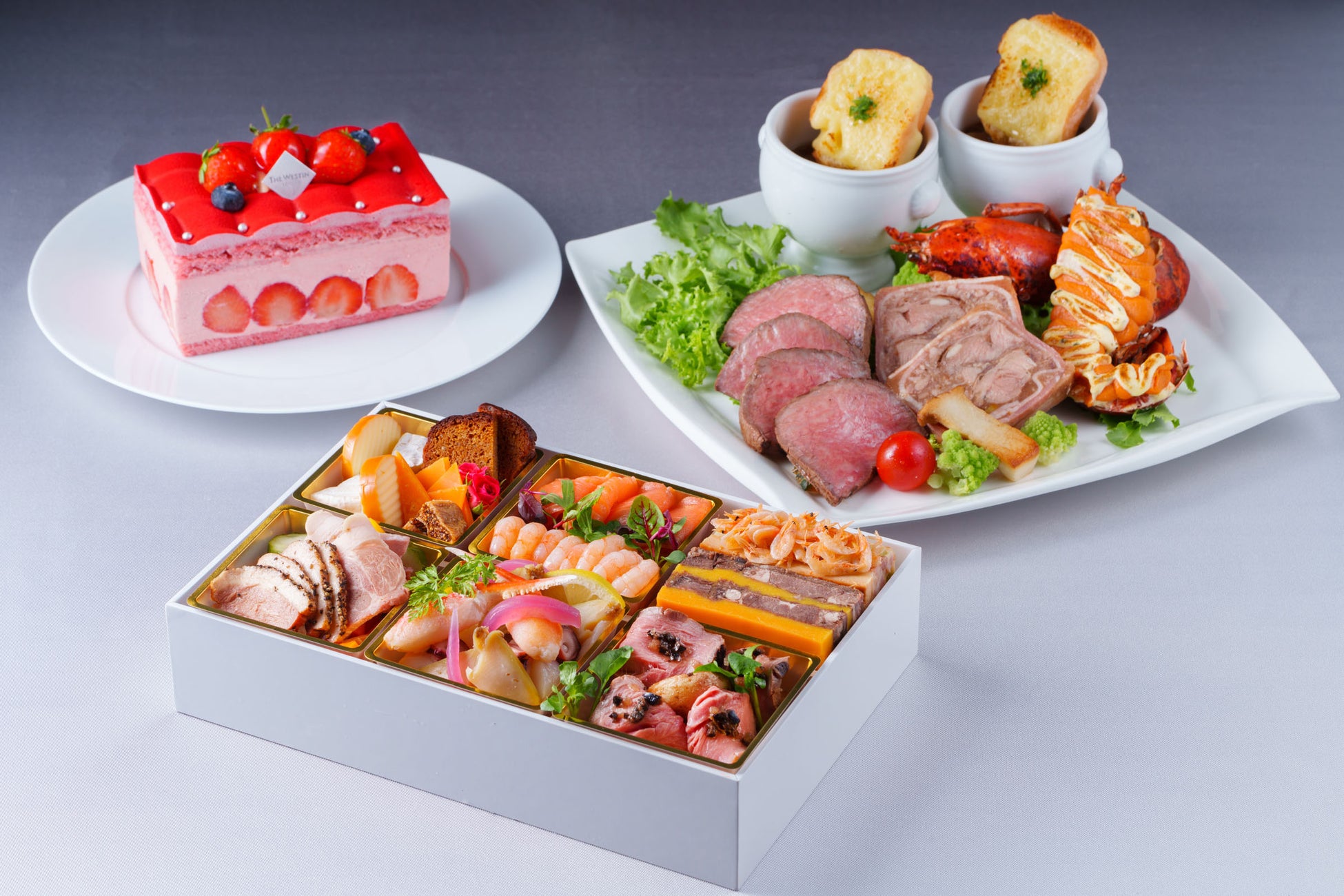 また、オマール海老のテルミドールや、日高見牛のサーロインのグリルなどが、コース料理のようなに並ぶお食事や、クリスマスツリーに見立てたプチシューを重ねたプロフィットロールなど、テーブルに華を添えるテイクアウトのパーティーハンパーもラインナップ。さらに、マロンクリームを乗せた口どけよいイタリアの伝統菓子のパンドーロ マローネや、クリスマスの定番シュトーレンもラインナップし、当ホテルならではの味わいを存分にお楽しみいただけます。