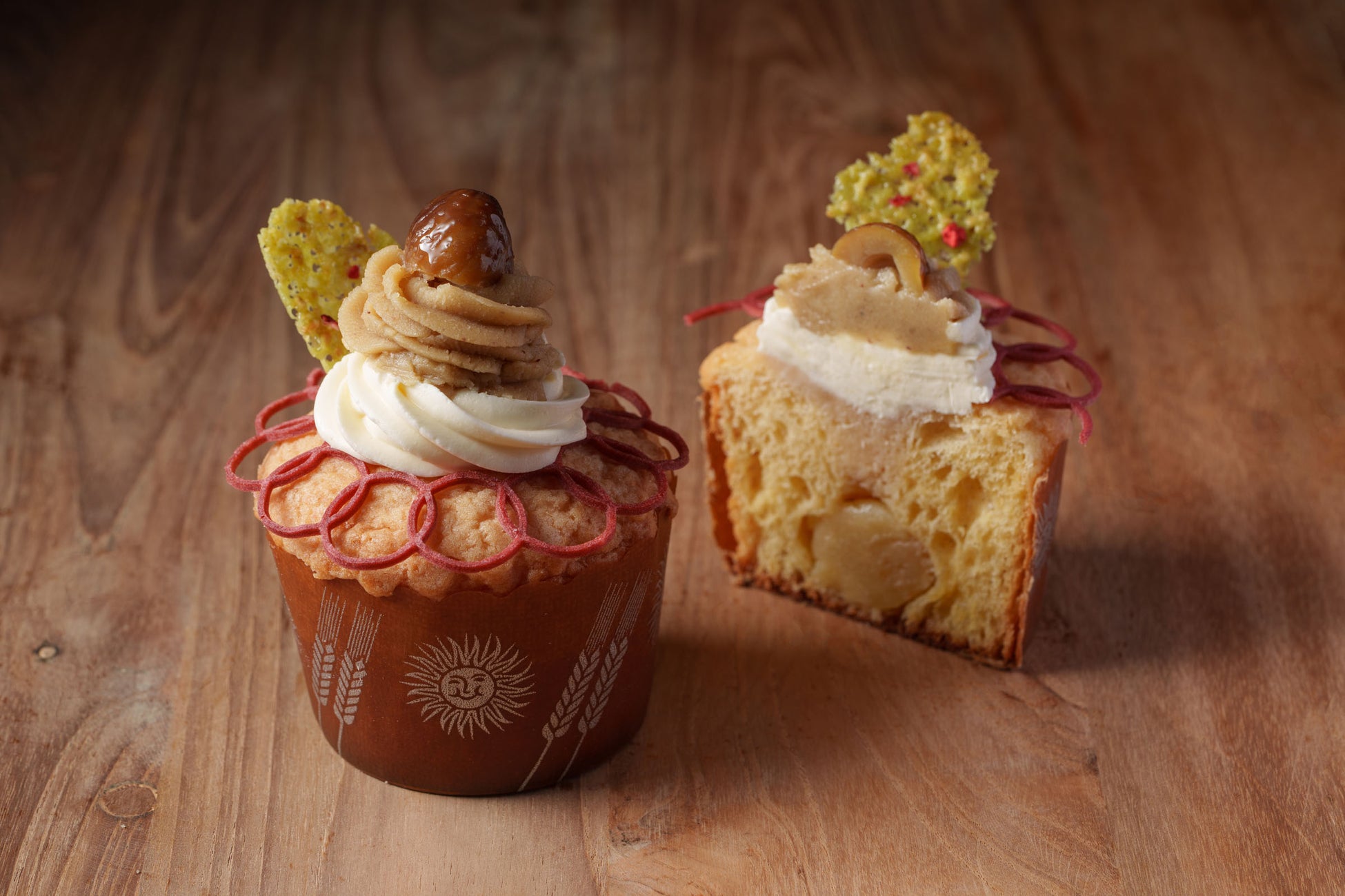 パネトーネとともにイタリアの伝統的なお菓子です。宮城県産小麦、宮城県丸森町産はちみつ、北海道産バター、卵黄を混ぜ合わせた生地は、ふんわりと柔らかく香り高い味わいです。クリームチーズとマスカルポーネを混ぜ合わせたクリームと、熊本県産の濃厚なマロンクリームとともにお召し上がりください。