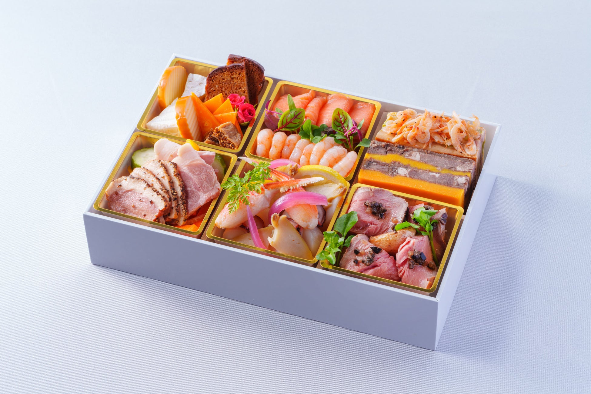 「和牛のローストビーフ トリュフポテト添え」や、「桜海老のキッシュ」、「牛たんとにんじんのテリーヌ」、「アワビ・蟹爪・帆立貝・タコのシーフードマリネ」、「スモークサーモン&ガーリックシュリンプ」、「ジャンボンブランと鴨肉のパストラミの盛り合わせ」と、多彩な味わい6品を詰め合わせました。シャンパンやワインとともにお召し上がりください。