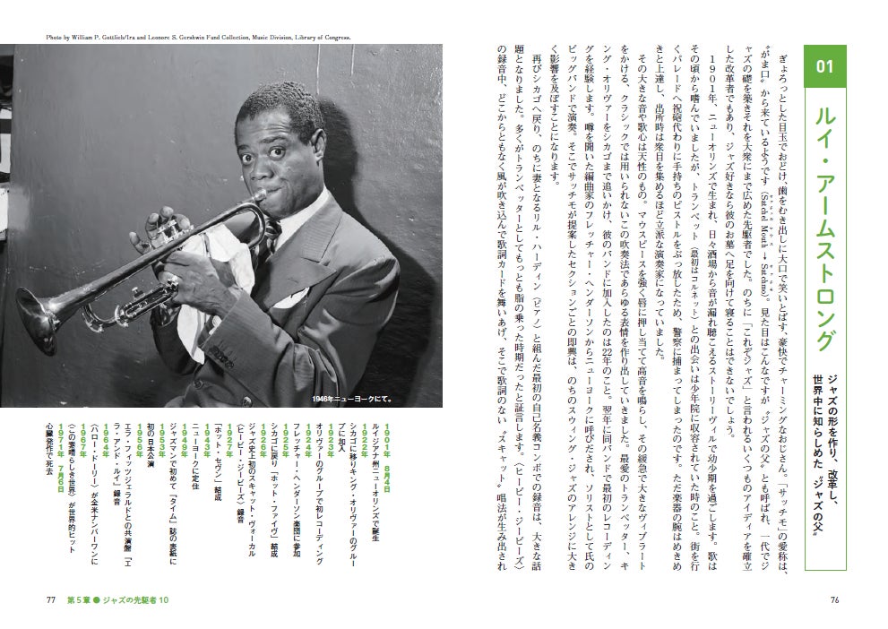 「現在は何回目かの〝ジャズ活性期〟である」とは、監修の後藤さんの言。ジャズ以外の音楽(ポップス、ソウルからファンク、ヒップホップ等)と歴史ある様々なジャズが融合し、発展を続けている。おすすめの「21世紀のジャズ」10選は必見。現在進行形のジャズを楽しまないのはもったいない。