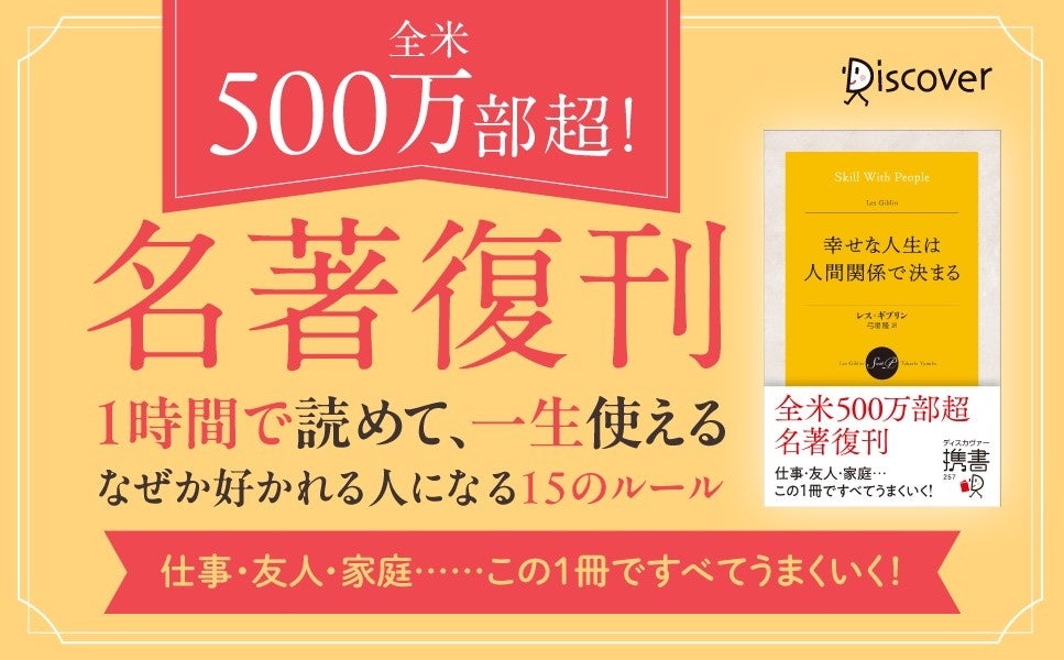 株式会社ディスカヴァー・トゥエンティワン(本社:東京都千代田区、代表取締役兼社長執行役員:谷口奈緒美)は2025年2月21日に『幸せな人生は人間関係で決まる』(レス・ギブリン著、弓場隆訳)を刊行しました。