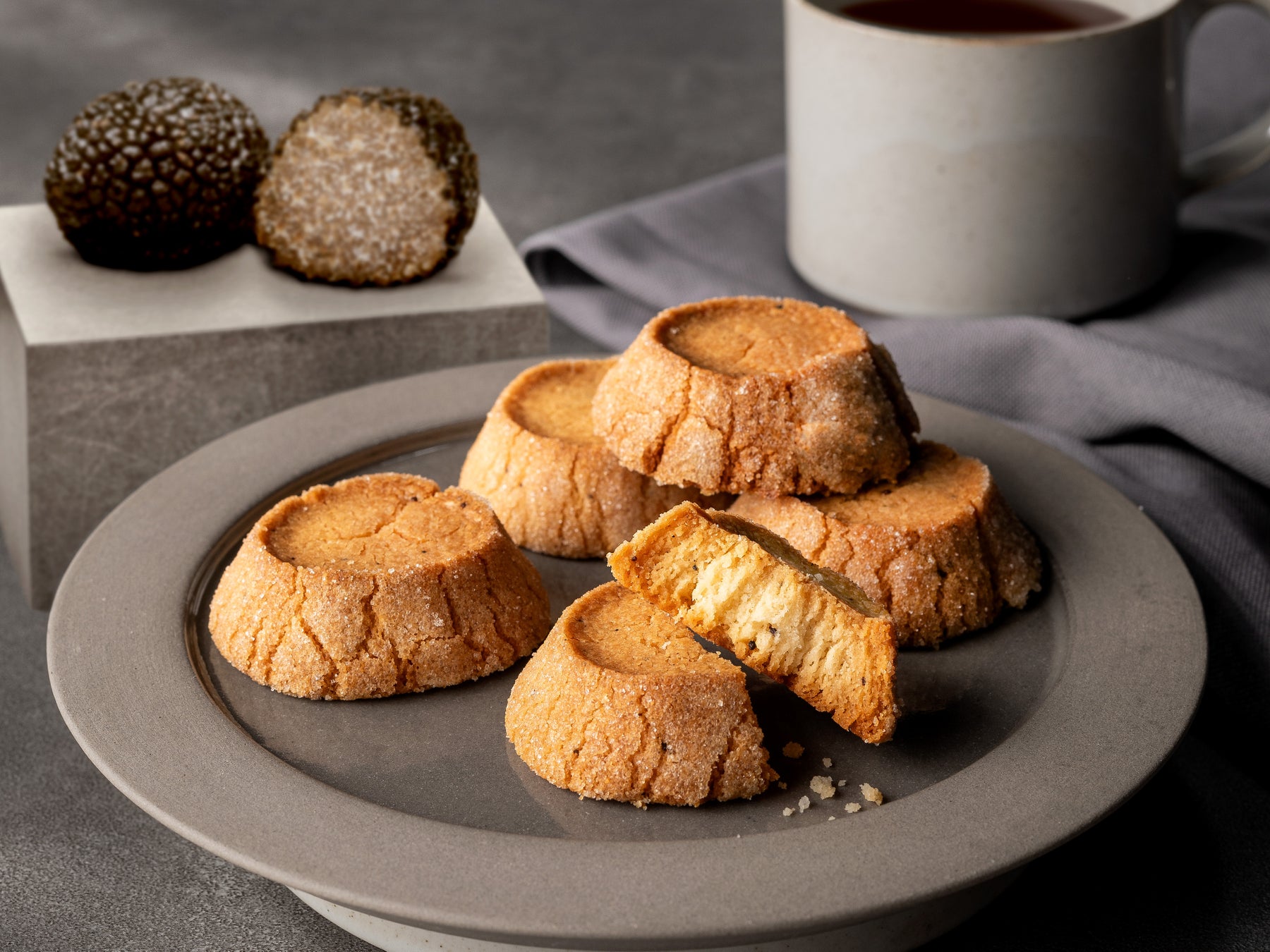 〈優雅な旅で出会ったスペシャルグルメ〉をテーマにした新シリーズ“バターステイツプレミアム”。第1弾は、世界の料理人が愛する高級食材「トリュフ」。窯の熱でバターが溢れとろける独自の「バターなだれとろけ製法」で香ばしく焼き上げたバターリッチクッキーに、ヨーロッパ産トリュフ粒・黒トリュフ塩・トリュフオイルを合わせました。トリュフの芳醇な香りと、相性抜群のパルメザンチーズを隠し味にした上品な味わいです。