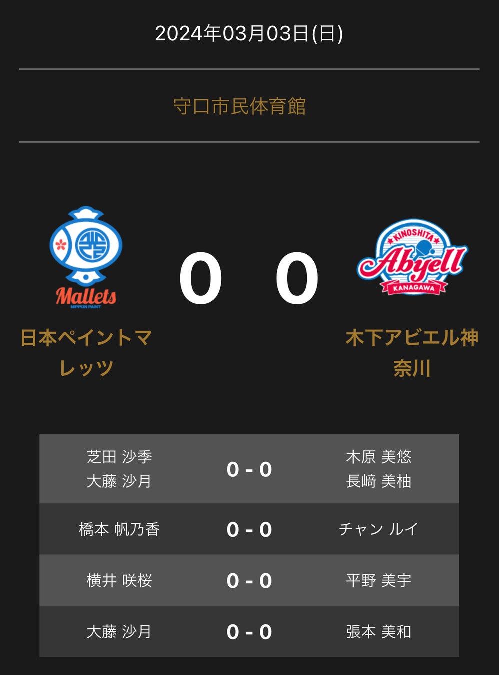 ノジマTリーグ 2023-2024シーズン 公式戦 3月3日開催 日本ペイントマレッツ vs 木下アビエル神奈川 対戦オーダー発表