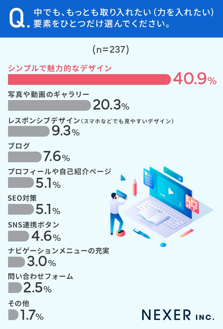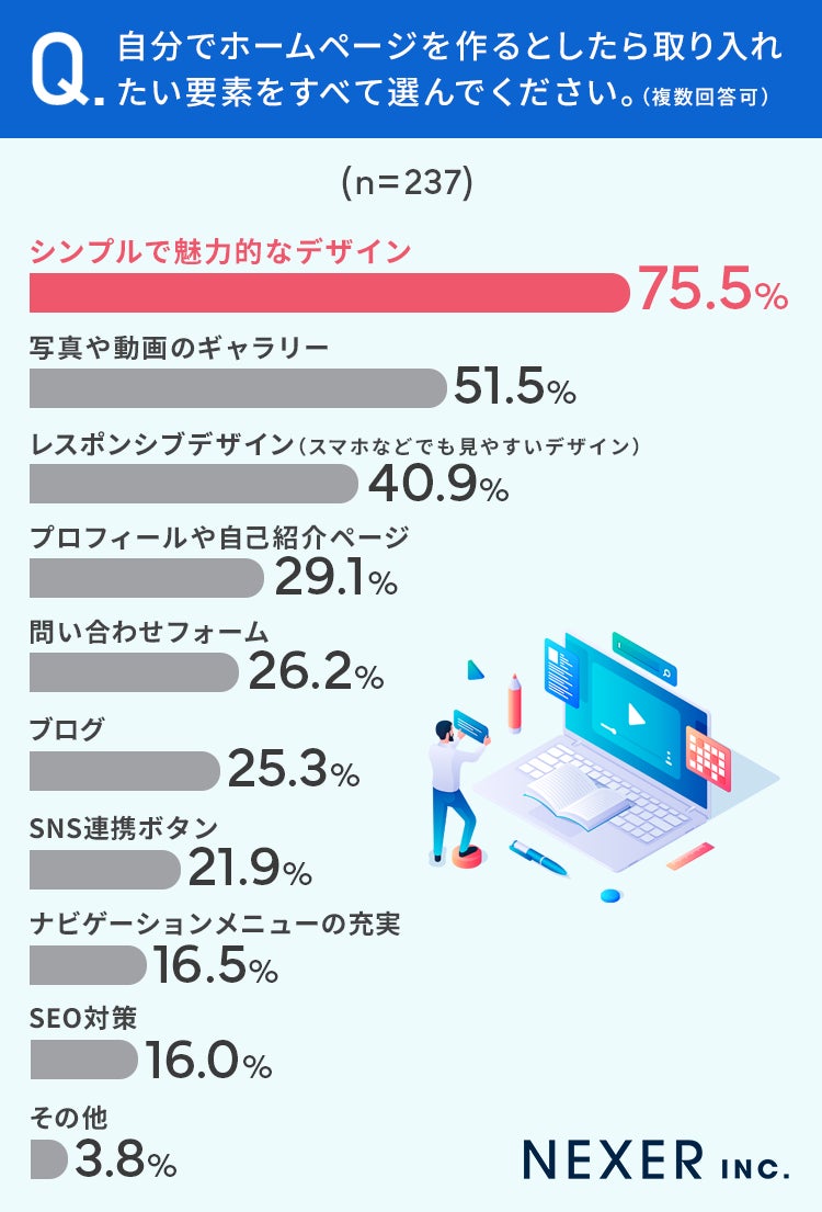 【自分でHPを作るとしたら?】75.5%が「シンプルで魅力的なデザイン」にしたい