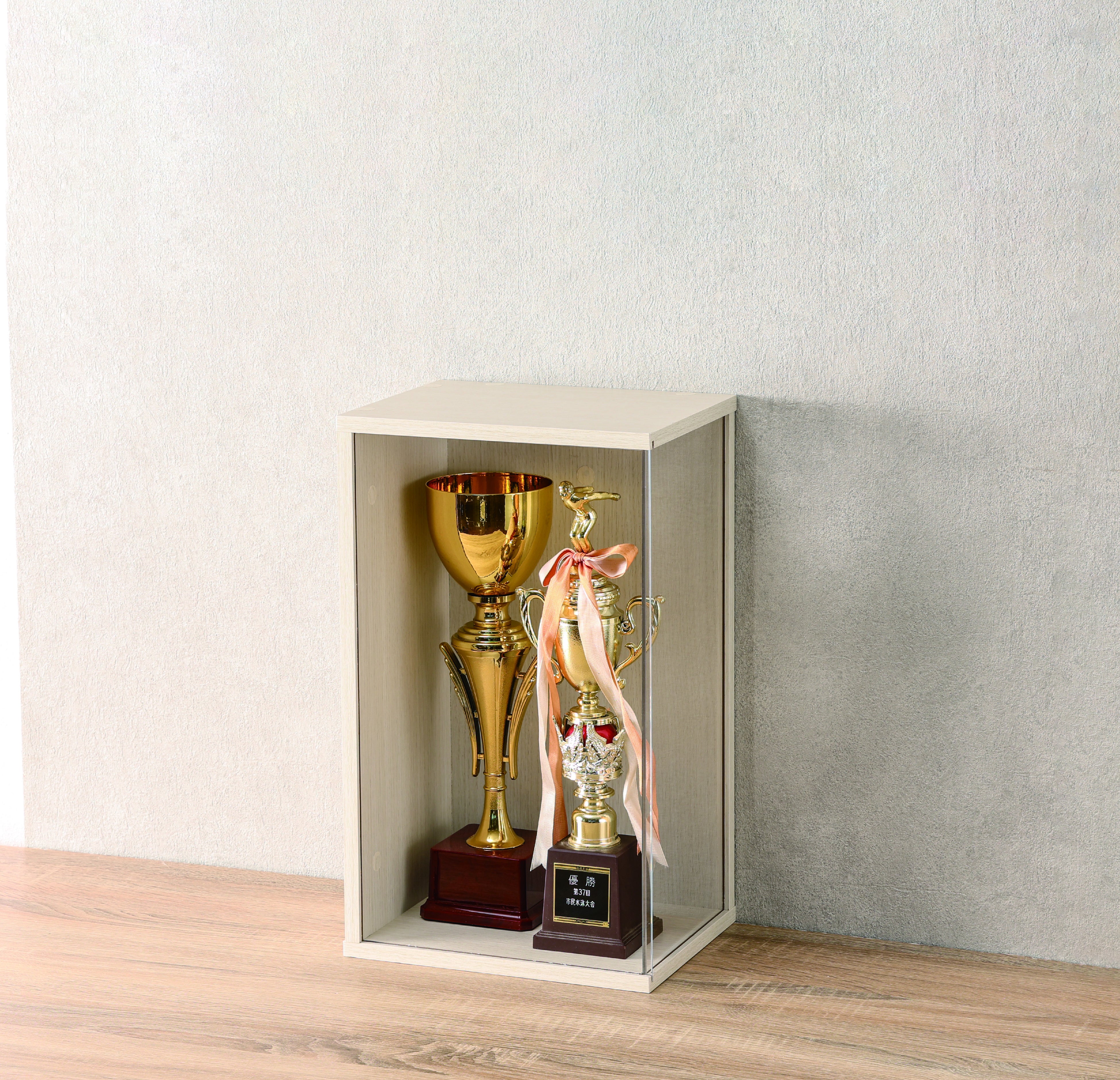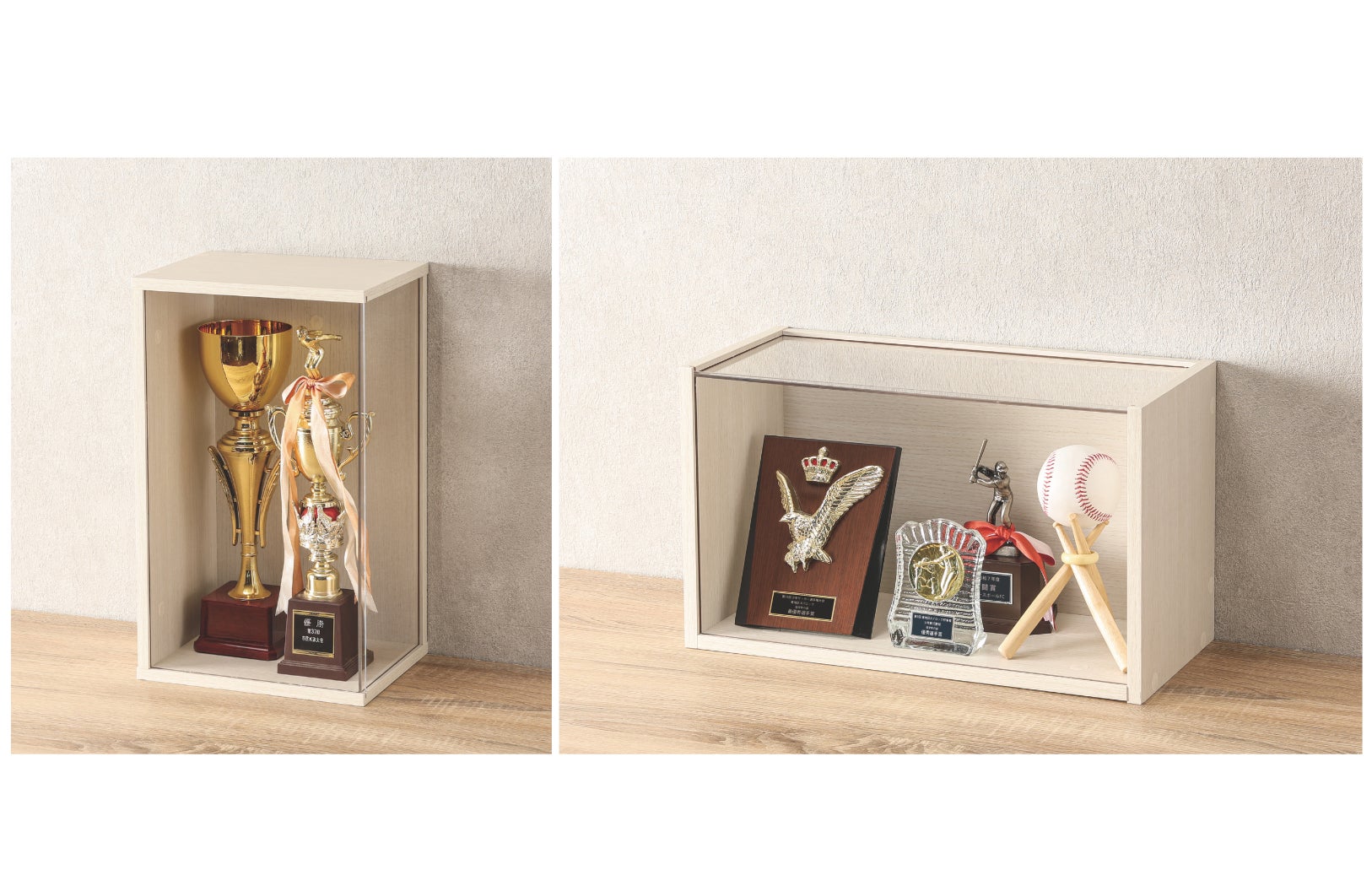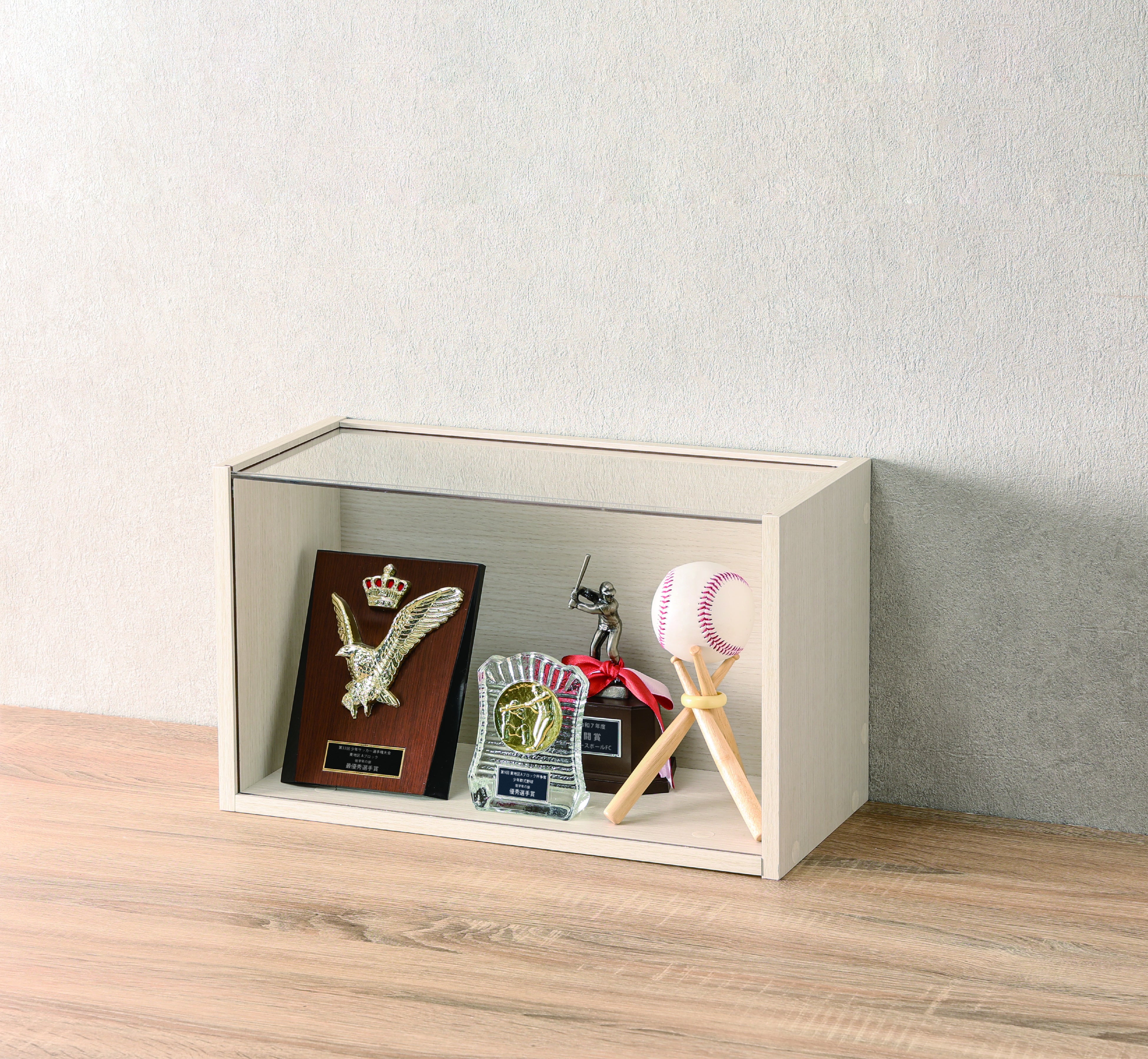 前面と上面が透明なパネルになっているため、お気に入りのぬいぐるみやトロフィーはもちろん、大切な推しグッズなども見やすく飾ることが出来ます。ほこりも被りにくく、飾ったものを傷や汚れから守ります。