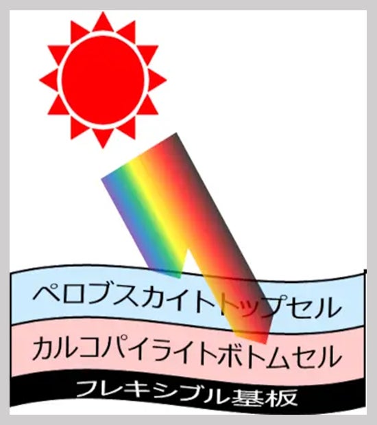わ発のペロブスカイト太陽電池及びカルコパイライト太陽電池を重ね合わせた、国産の次世代型