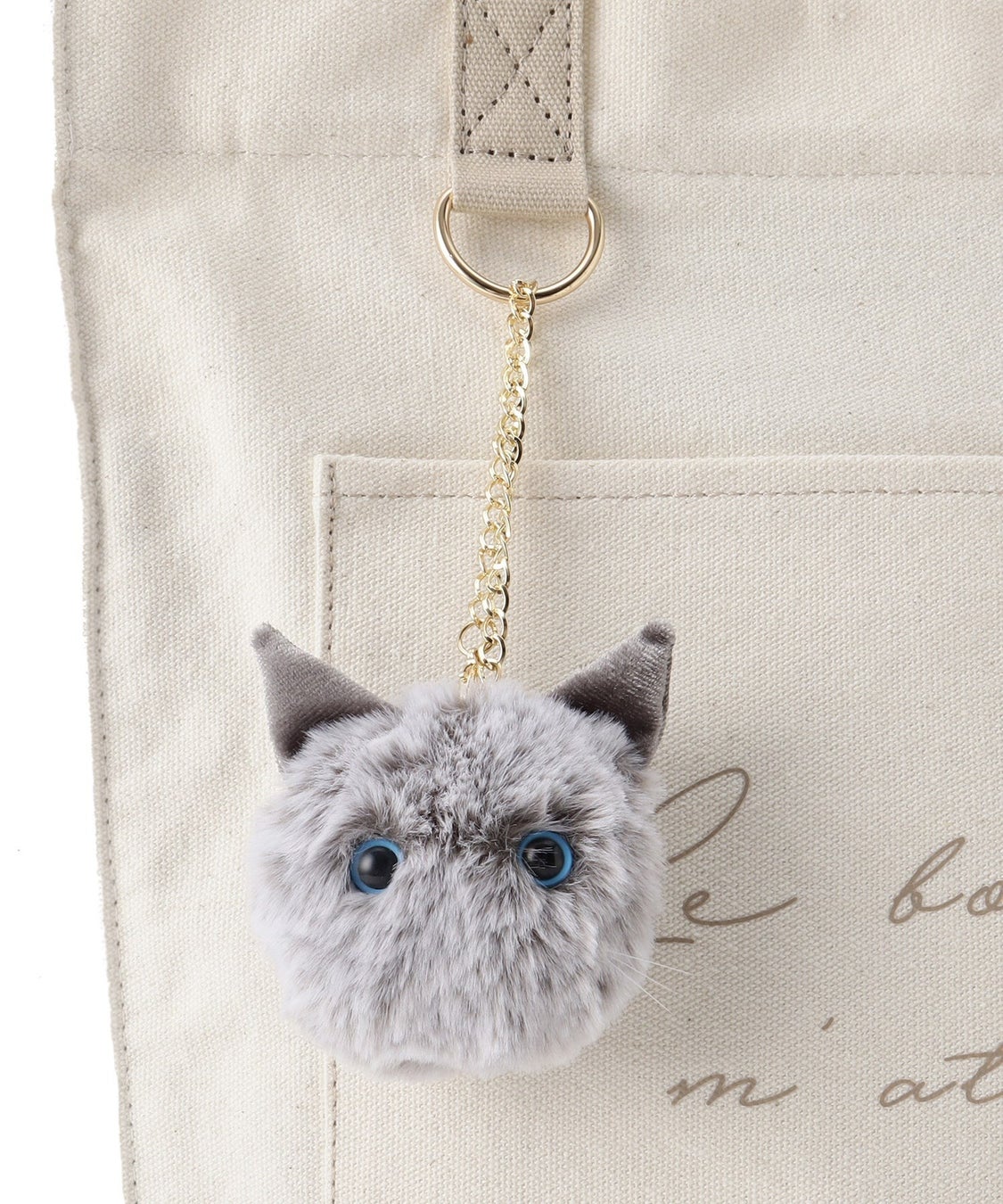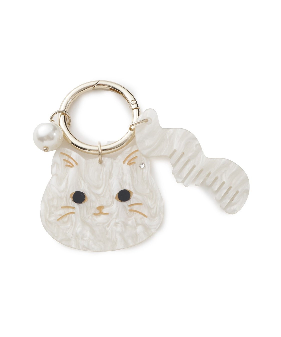 ねこの顔としっぽをデザインしたバッグチャーム。耳元のストーンがさりげないワンポイントになっています。キュートなしもぶくれのお顔と、しっぽは髪をとかすコームとしてもお使いいただけます。