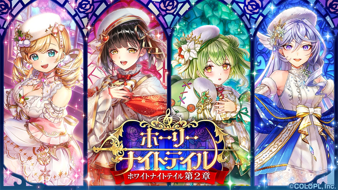 2023年12月15日(金)16:00より、新イベント「ホーリーナイトテイル -ホワイトナイトテイル 第2章-」を開催しております。また、同刻よりスノウ(CV:白石涼子)、エデルヴェス(CV:河瀬茉希)、プリムヴェール(CV:福島美里衣)、ポインセット(CV:高橋花林)が登場するガチャを開催いたします。