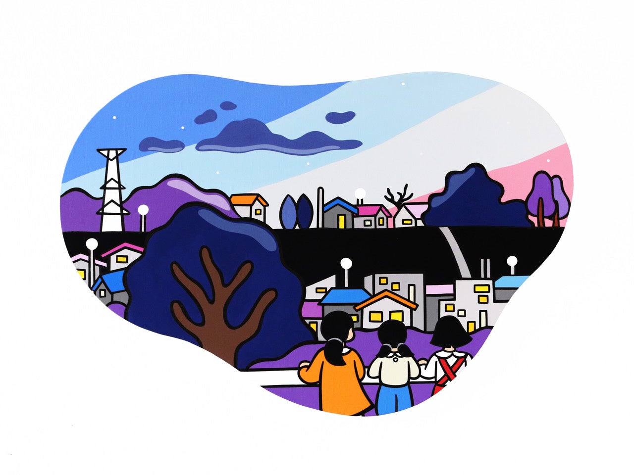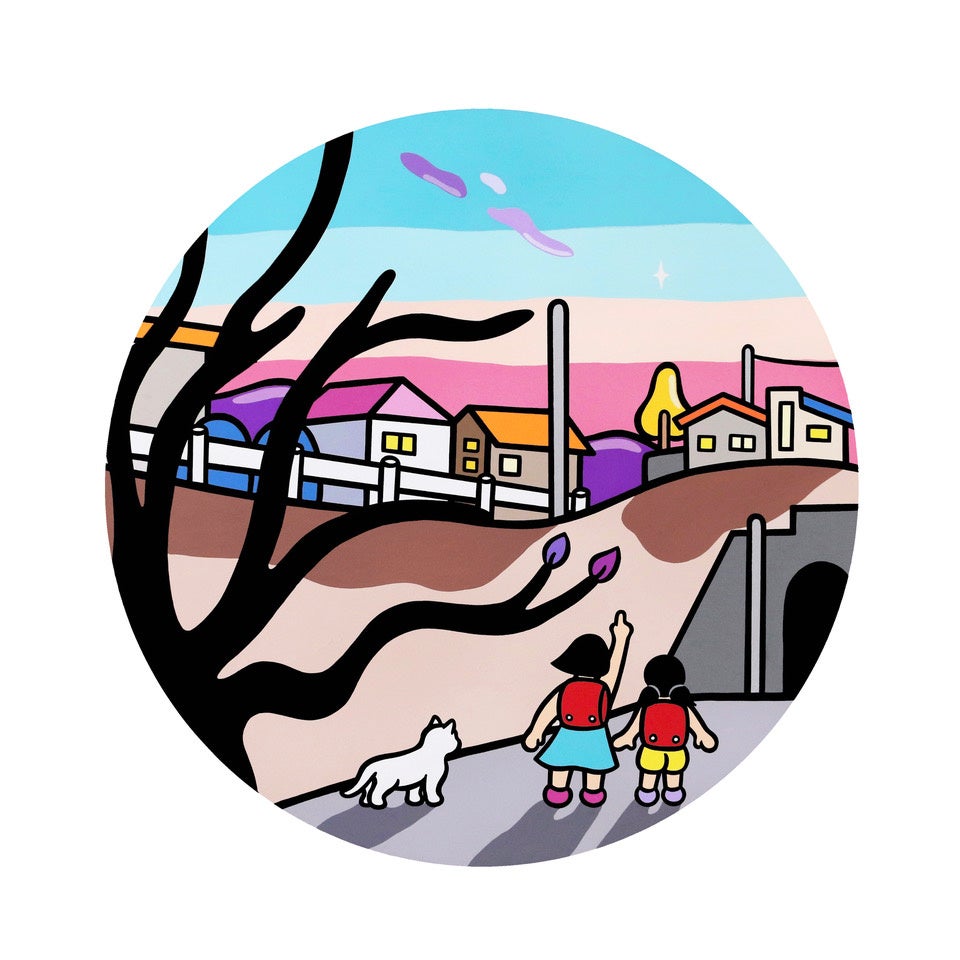 今日実存する風景と自らの幼少期の記憶を織り交ぜた描写を通し、誰しもが持っているであろう子供の頃の思い出と、原風景や子供時代そのものが放つ独特の哀愁感を表現。近年では地方や昭和の風景、また子供そのものに焦点を当てたシリーズなども制作し、「原点」の追及の幅を広げている。古き良き純粋なものを守り続けたいという思いから、懐かしさと新しさの融合したPOPでノスタルジックな世界を展開し続ける。