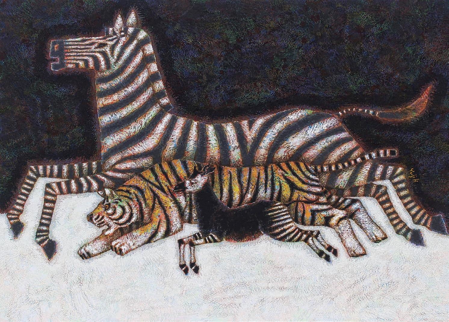 純粋な感情を爆発させ、圧倒的なエネルギーを表現する新進気鋭の作家。オリジナリティあふれるモチーフで