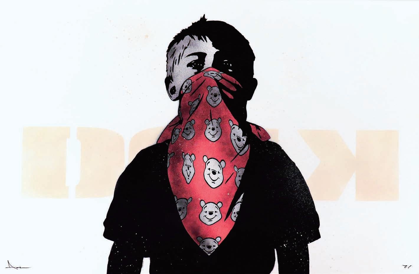 DOLK の作品の中で最も人気の高いモチーフを使った作品は、ストリートアーティストを引退した彼の特別なものです。強い視線の先にある、無言の中のメッセージを受け取ってください。
