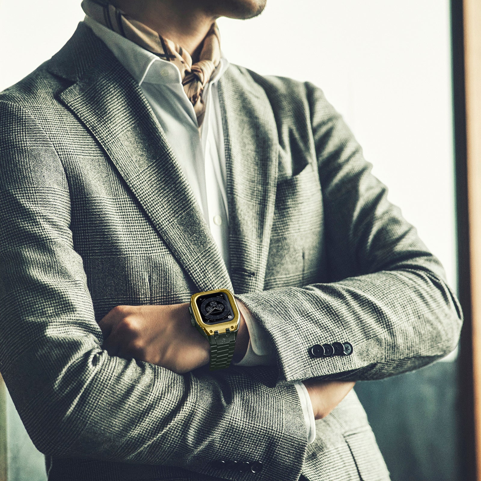 スーツやジャケットにも絶妙にマッチし、機能的なAppleウォッチをラグジュアリー時計のようなエレガントなスタイルに昇華させます。