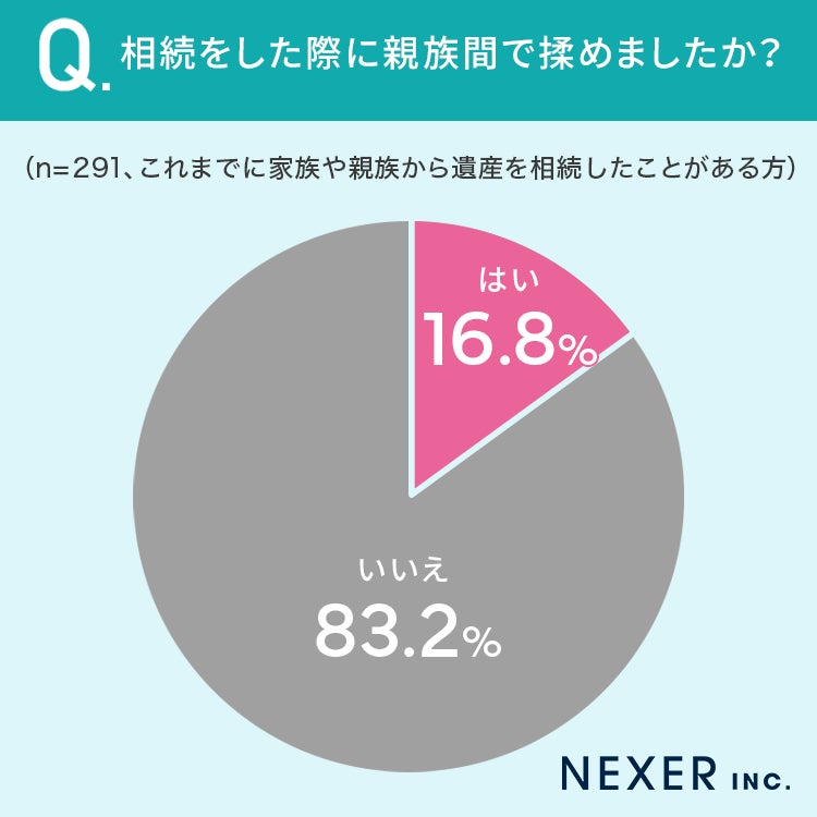 16.8%の方が、相続をした際に親族間で揉めたと回答しています。