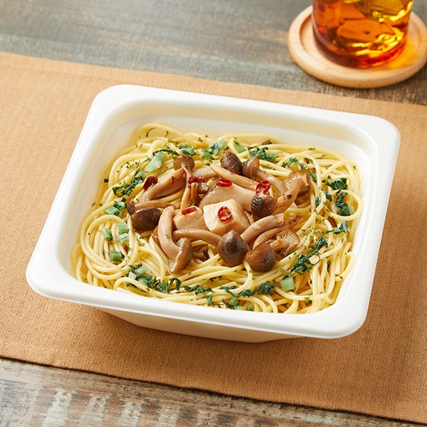 【内容】長野県産「ぶなしめじ」と「エリンギ」を使用し、白だしとこいくちしょうゆで味付けをした和風仕立てのペペロンチーノです。さらに信州菜をトッピングし、信州尽くしのパスタに仕上げました。