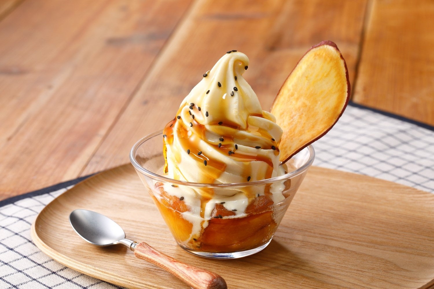 「蔵出し焼き芋かいつか」は、茨城県を中心に全6店舗(かすみがうら本店、つくば店、イオン土浦店、流山おおたかの森店、プレイアトレ土浦店、ラゾーナ川崎プラザ店)を展開しております。焼き芋をはじめとする様々なさつまいも関連商品とともに、かすみがうら本店、つくば店、流山おおたかの森店の3店舗ではソフトクリームやラテなど焼き芋を使用したメニューを提供しています。