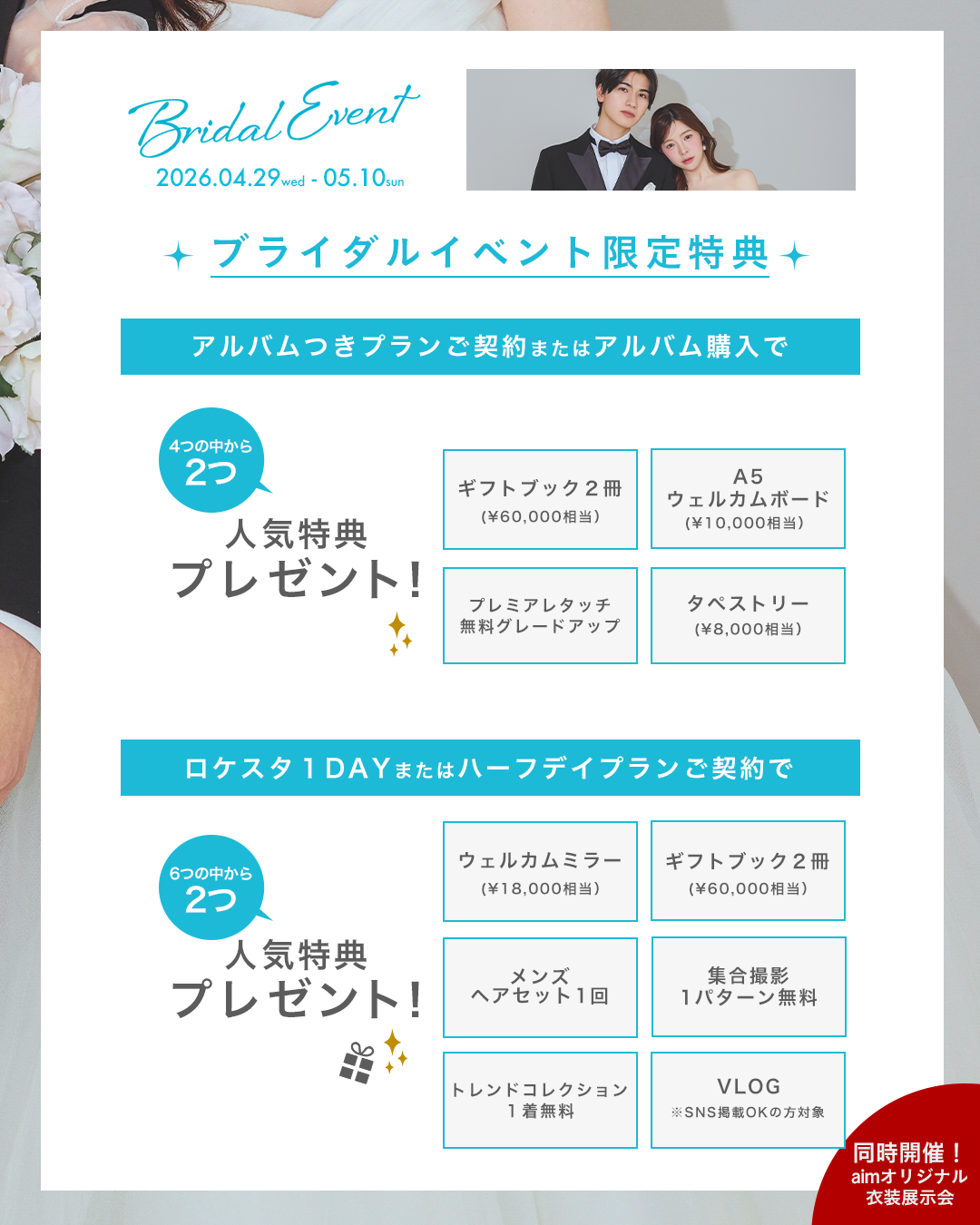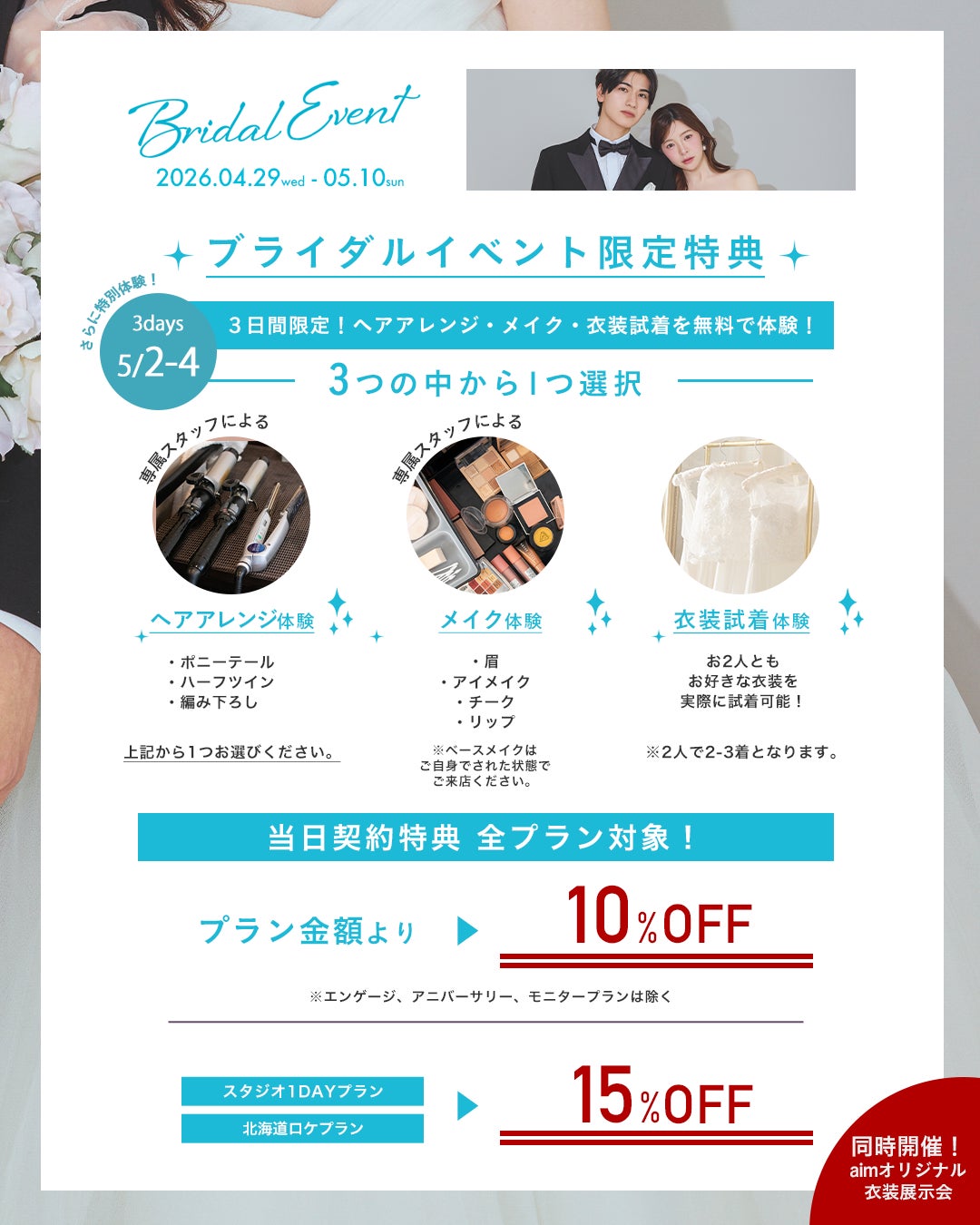【aim東京原宿店】4/29 〜 5/10 ブライダルイベント開催決定!