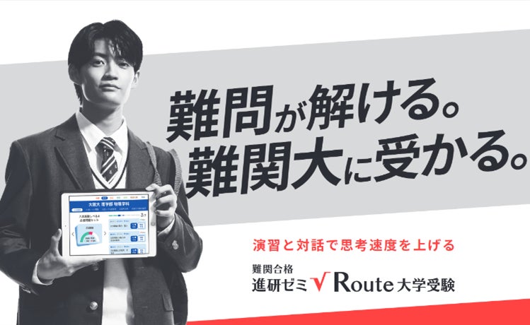 「AI個別最適化学習 難関合格 進研ゼミ√Route」は、志望大学逆算の個別カリキュラム提供に加え、これまで学校や塾でしかできなかった「対話型学習」を生成AIで実現した大学受験向けデジタル学習サービスです。