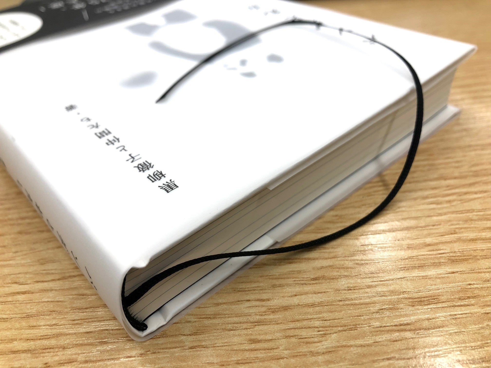【ここに注目①】スピンや花布(はなぎれ)などに黒色を用いてパンダカラーに! カバーは繊細な紙を傷めないように手作業で巻き、ていねいに仕上げました。