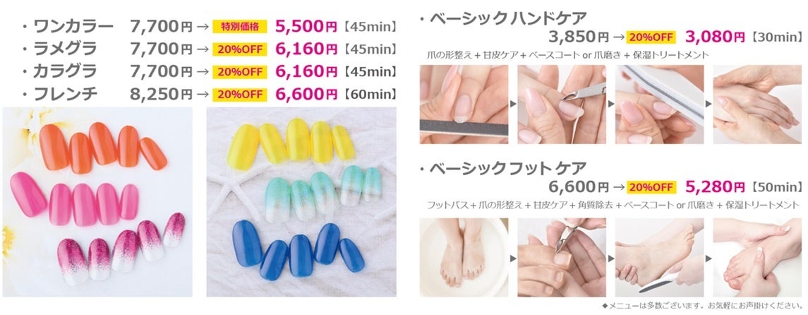 ほか、ジェルネイル、ケアメニューすべて20%OFF