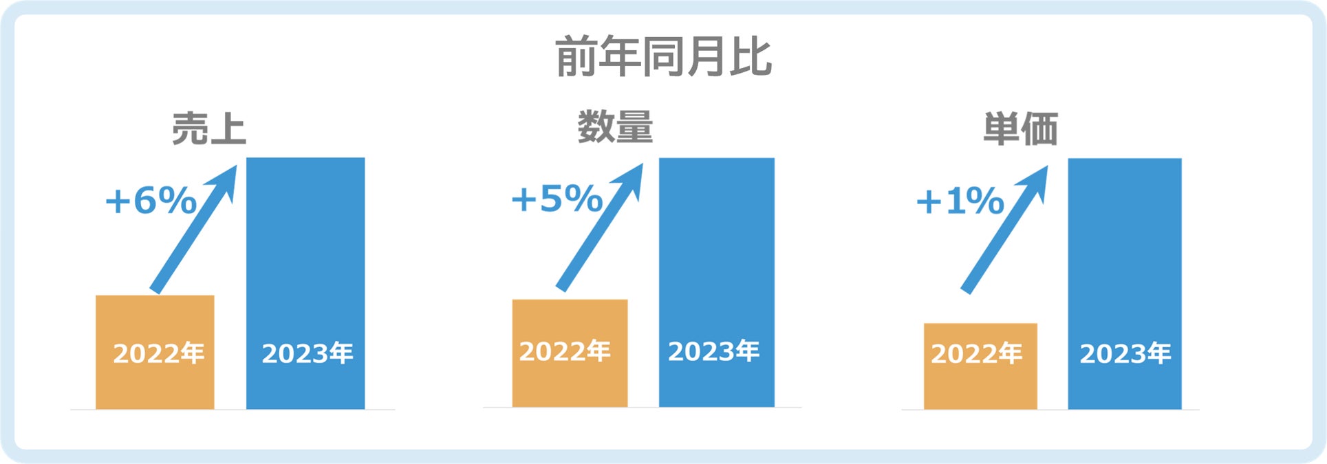 前年同月比 売上6%アップ、閑散月売上10%改善