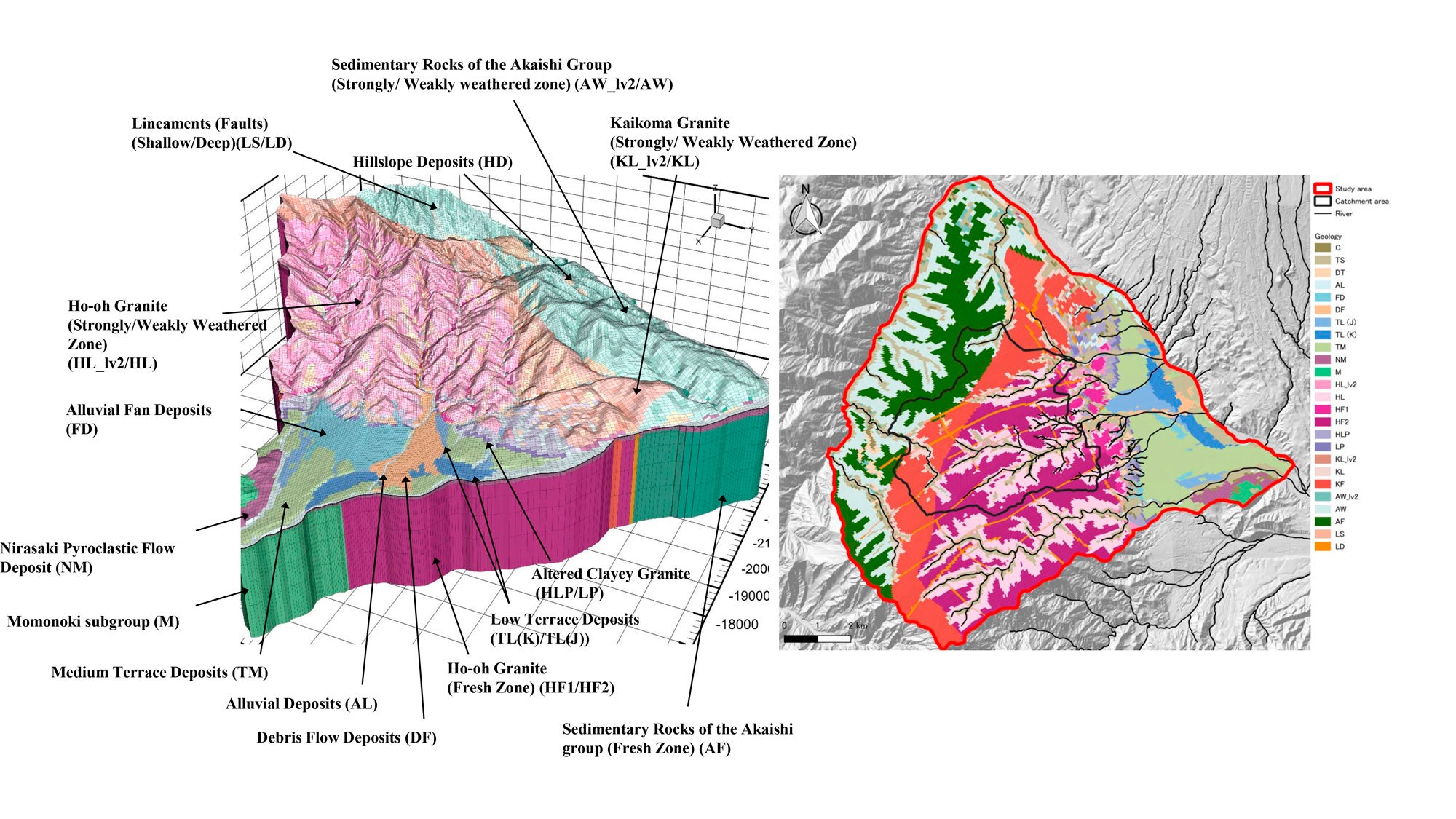「観測とモデルの対話的アプローチ」を用いて地下水涵養量推定の精度向上を図る手法を確立しました。また、地質の違いによって地下に蓄えられていく水の浸透過程や量が異なること、特にリニアメントと呼ばれる局所的な線状構造が涵養プロセスに影響を及ぼすことも明らかにしました。