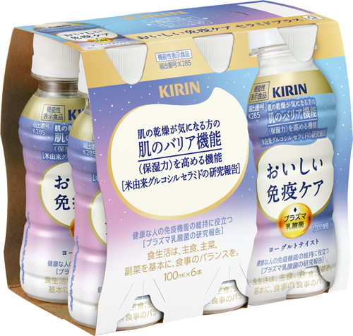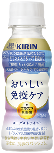 こうした背景から肌ニーズにこたえる商品として、免疫ケアと肌ケアを両立できる機能性表示食品「キリン おいしい免疫ケア セラミドプラス」を3月3日(火)に発売します。本商品は、「プラズマ乳酸菌」で免疫ケアを、「米由来グルコシルセラミド」で肌のバリア機能(保湿力)を高める機能をサポートし、健康的な美しさの実現を目指します。