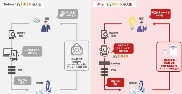 トランスコスモスでは、さらに「TOLFA」を活用することで、これまでNPSを取得出来ていなかった顧客層に対して、NPS評価を取得できる仕組みの構築を、現在POWER PLUG社と開発しています。IIJmioサポートセンターの現運用では、通話終了後に登録されているメールアドレス宛にアンケートURLを送付していますが、今後はWeb上での通話終了後にそのままアンケート画面を表示させることで、チャネルを跨がずにアンケート協力依頼を行う仕組みを構築し、顧客からのフィードバック取得率の向上を目指します。