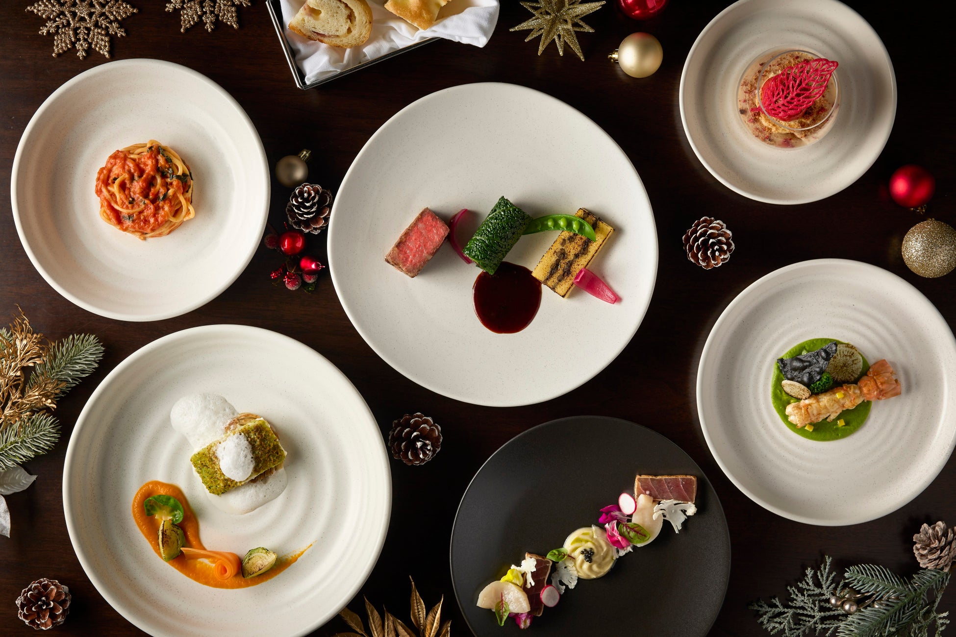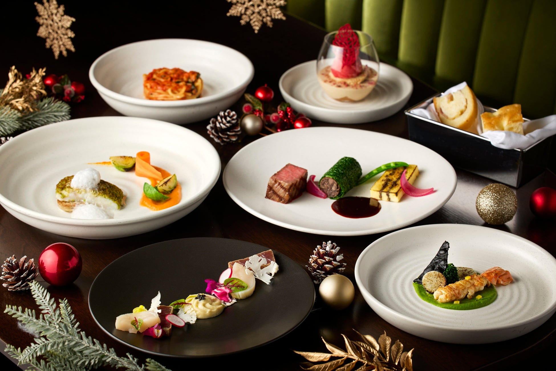 2024年のフェスティブシーズンにお届けするのは、この時期ならではの贅沢な食材を使用し、洗練された華やかなスタイルに仕上げたメニューと、シグネチャーのトマトバジルスパゲッティを楽しめるスペシャルなコースです。