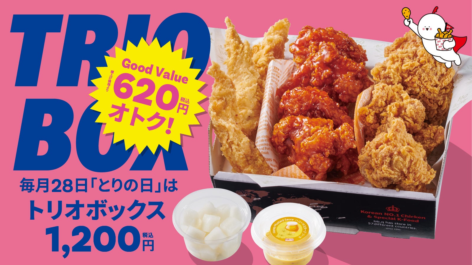【bb.q オリーブチキン】毎月28日「とりの日」限定トリオボックスが超ボリュームアップ積み上げ価格から620円オトクなGood Value!