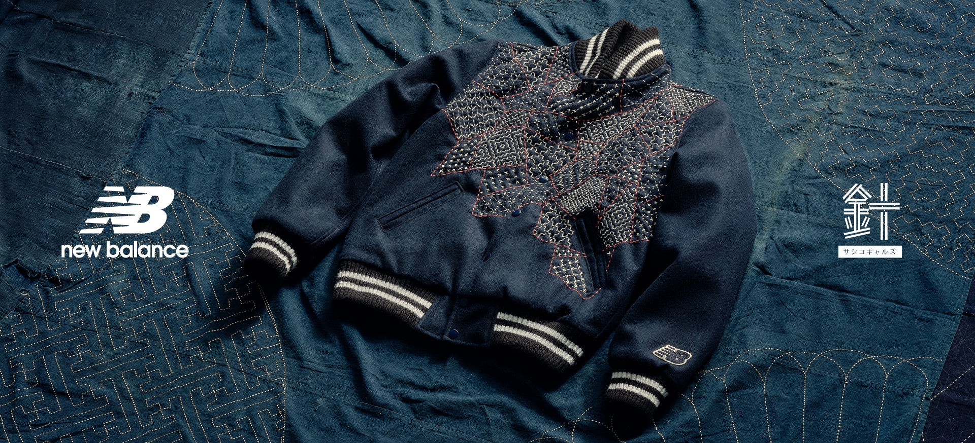 本プロジェクトでは、ニューバランスのフラッグシップモデルのひとつである「Made in U.S.A. 1300JP」と、アメリカンカルチャーを象徴する「プレミアムヴァーシティジャケット」をベースに、サシコギャルズによる刺し子カスタマイズを施した限定アイテムを製作。伝統工芸と現代ストリートカルチャーが交差する、唯一無二のプロダクトが誕生しました。「Made in U.S.A. 1300JP」は2足、ヴァーシティジャケットは4着のみ、限定販売いたします。