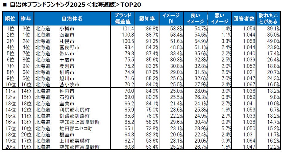 大東建託株式会社(本社:東京都港区、代表取締役 社長執行役員 CEO:竹内啓)は、18万人を超える回答を集めた大規模なブランド調査を行い、「いい部屋ネット 自治体ブランドランキング2025<北海道版>」として集計しました。