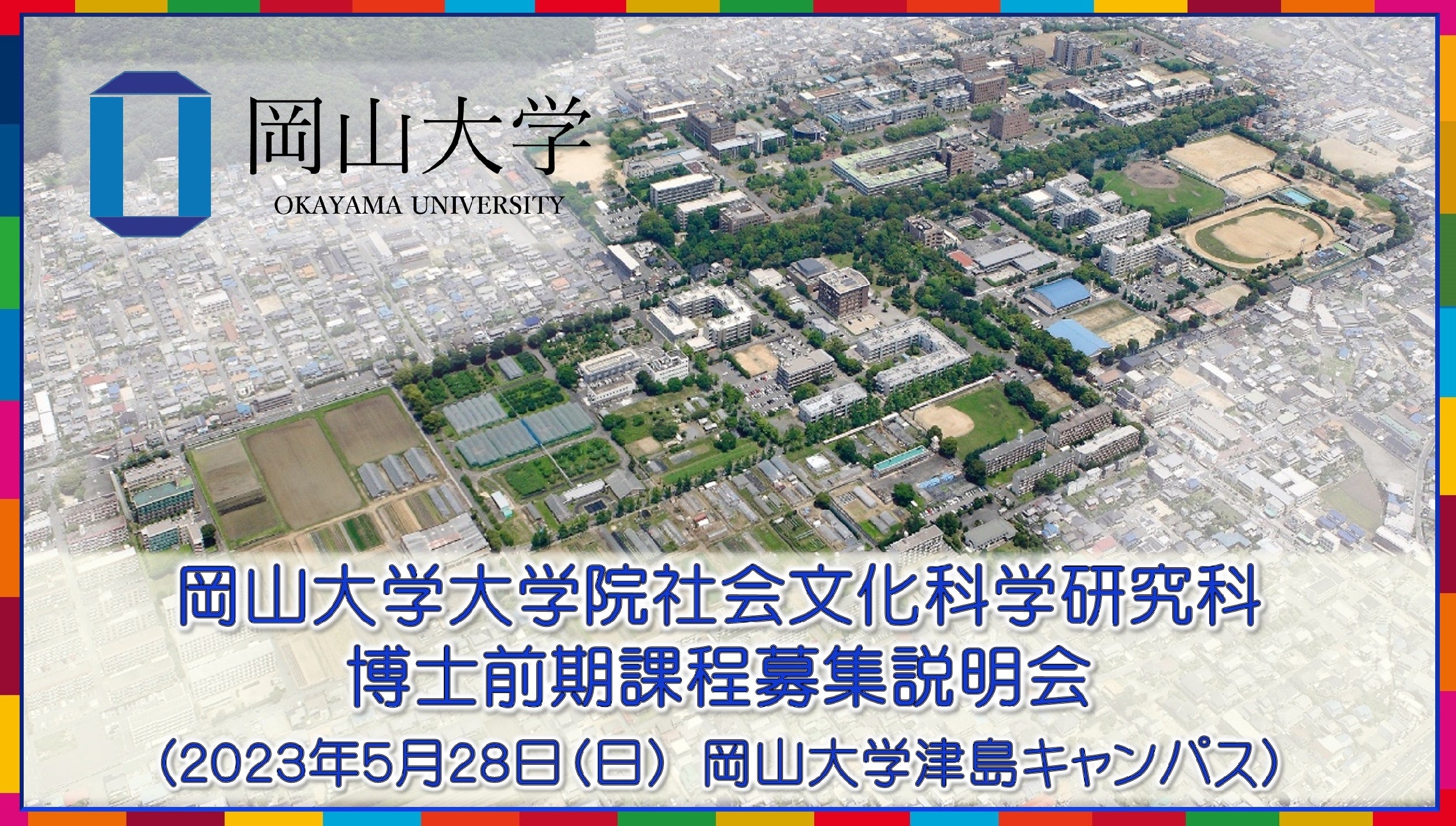 【岡山大学】岡山大学大学院社会文化科学研究科「博士前期課程募集説明会」〔5/28,日 岡山大学津島キャンパス〕