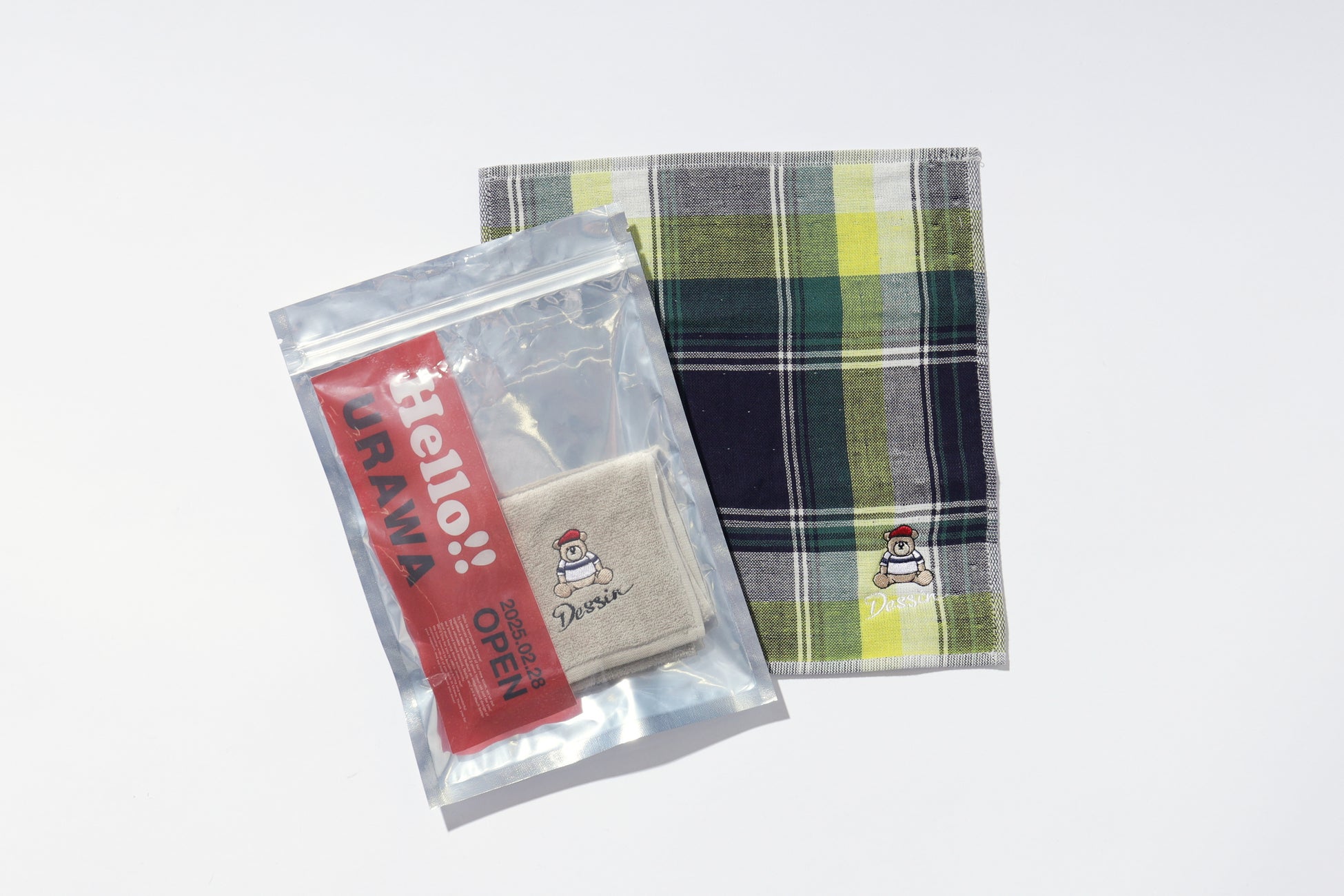 オープンを記念してデッサンのオリジナルキャラクター“デディ”の刺繍が施された限定の今治タオルセットを発売いたします。